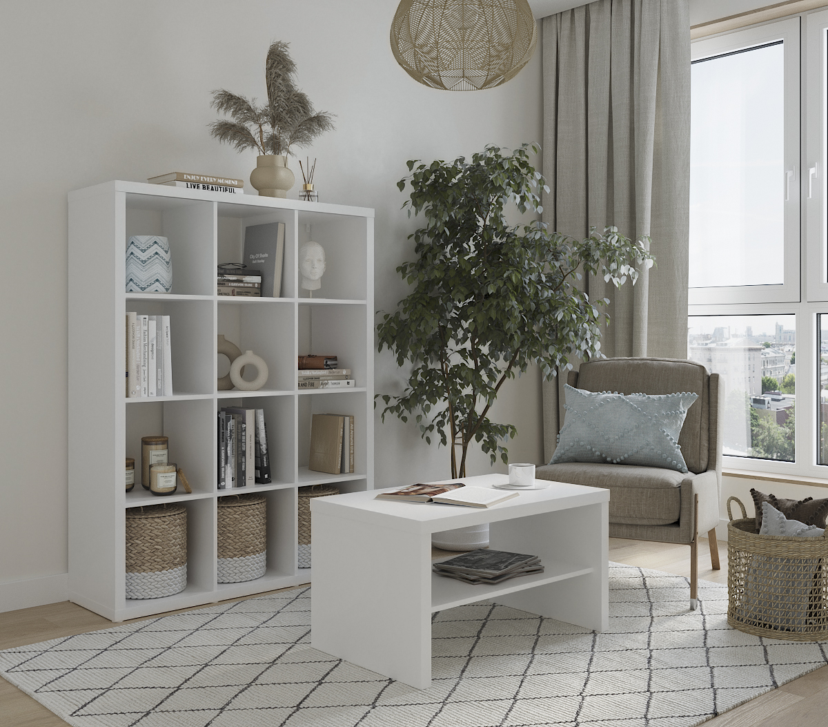 Журнальные столы и ТВ-тумбы ENKEL прекрасно сочетаются со стеллажами и полками FÖRA, создавая единый стильный дизайн помещения.