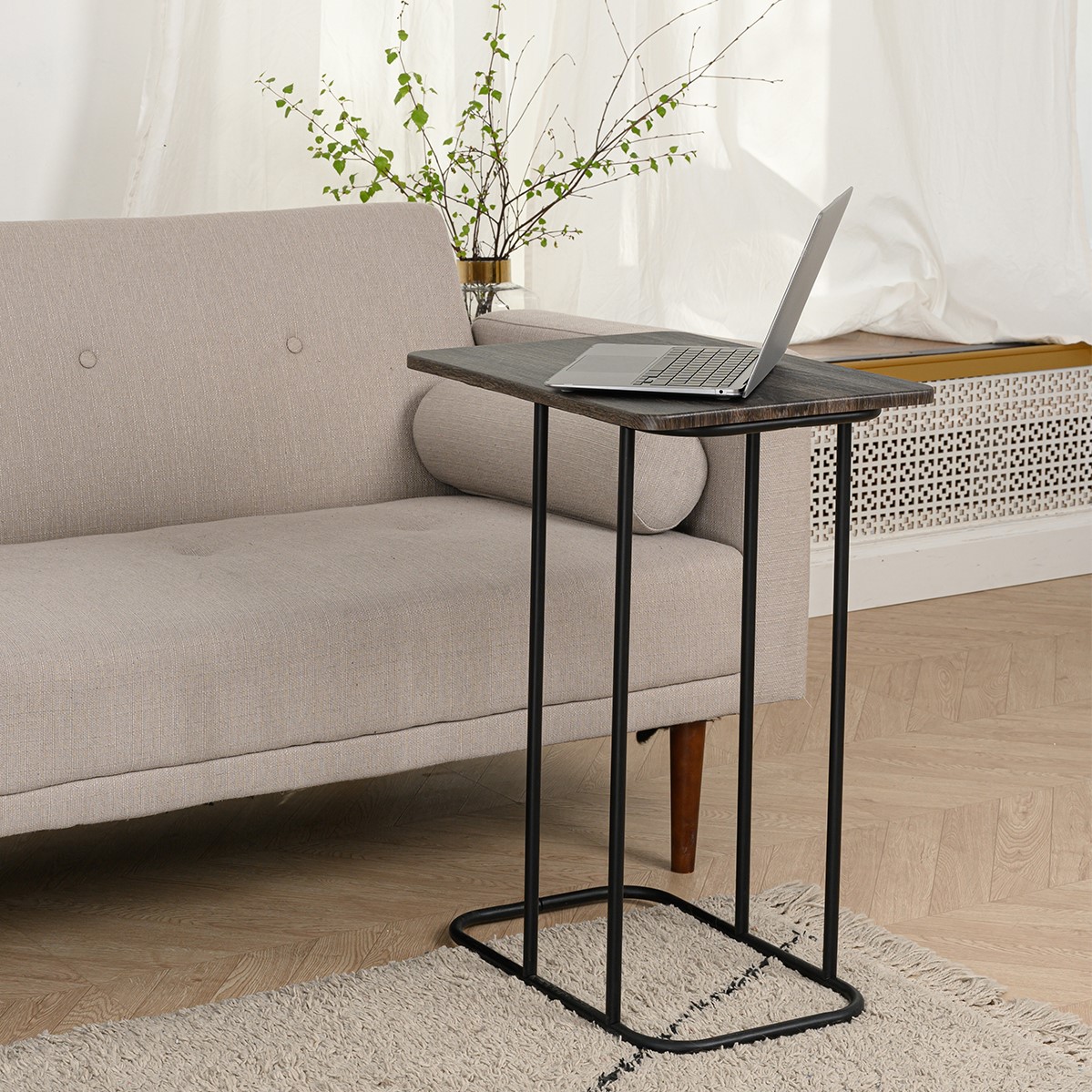 ХАУСХАЛЬТ, столик придиванный, 50x40 см, дуб шале/черный