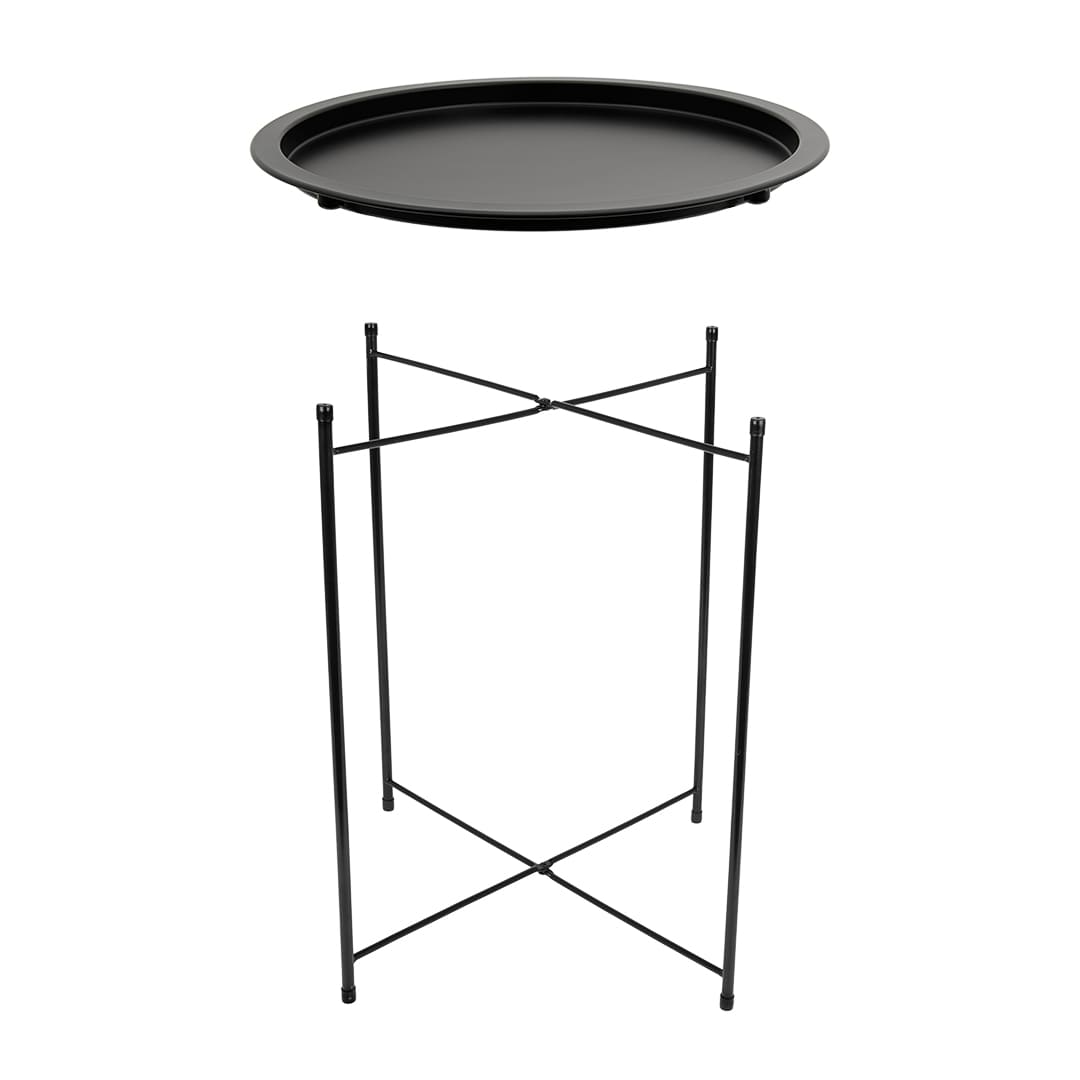 Складной металлический столик серебристого цвета от Handy Home станет прекрасным дополнением интерьера и многофункциональным декором.