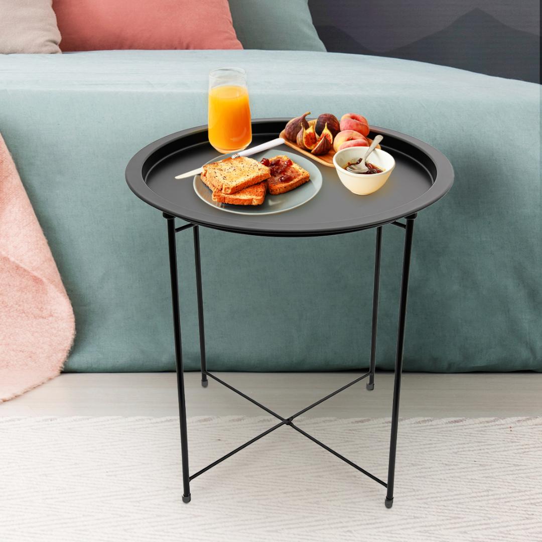 Складной металлический столик станет прекрасным дополнением интерьера и многофункциональным декором.