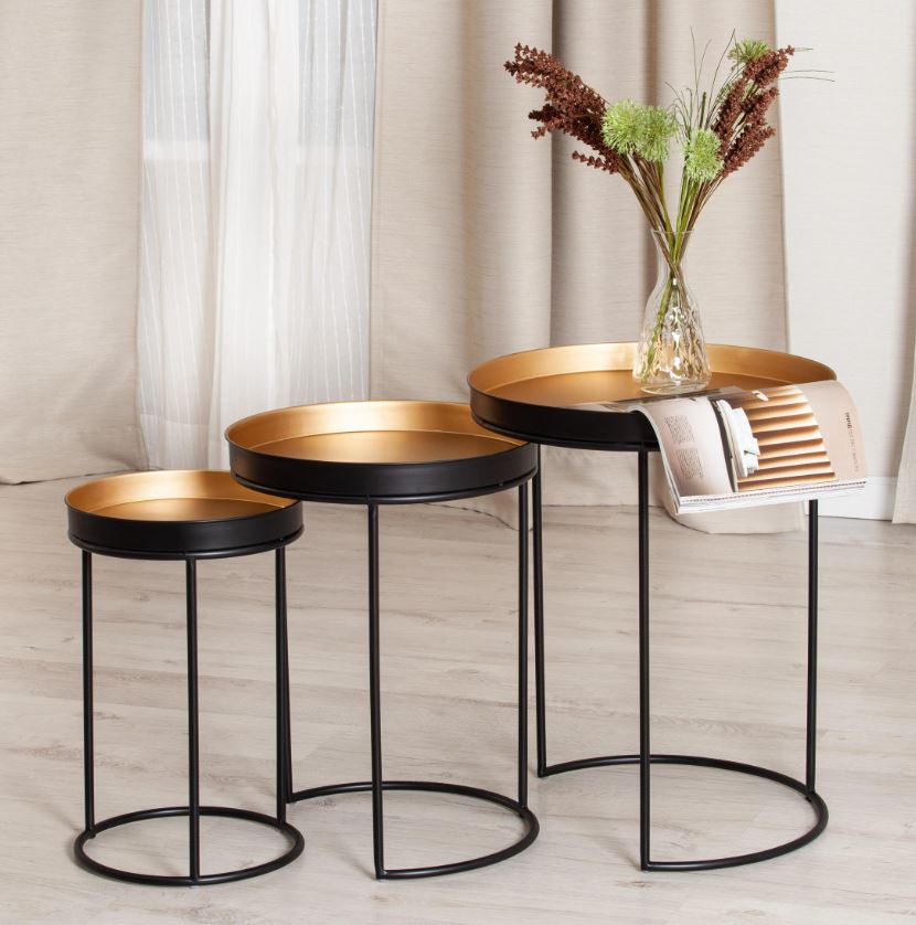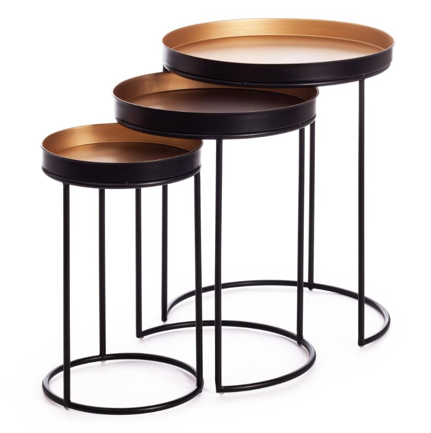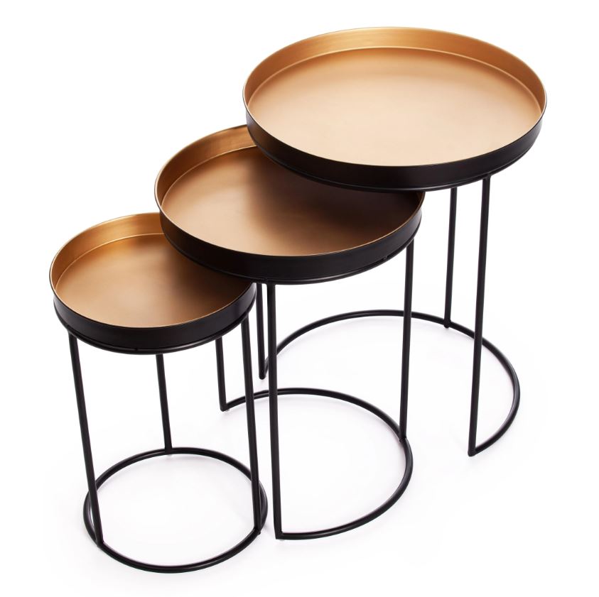 Столики можно комбинировать для разных целей, а также использовать отдельно, что особенно актуально, если в комнате находится несколько человек. Изящные металлические ножки и столешница из алюминиевого сплава - воплощение практичности, долговечности и изысканности. Сочетание прочного основания и круглой столешницы в цвете античная медь выглядит эффектно и оригинально. За счет своих компактных размеров и небольшого веса столики можно легко переместить с одного места на другое. Уникальный набор Secret De Maison RUNA - идеальное решение для вашего дома. Набор удивит своей оригинальностью, износостойкостью и надежностью, будет радовать владельцев на протяжении длительного времени. Комлект столиков будет отлично смотреться в гостинной, спальне или при входе в кафе. Набор поставляется в собранном виде.