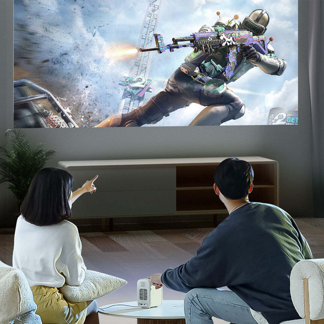 ZEEMR M1 Pro может улучшать качество изображение в автоматическом режиме. Технология искусственного интеллекта распознает светлые стены и подстраивает изображение добавляя яркость и контрастность при увеличении проекции.