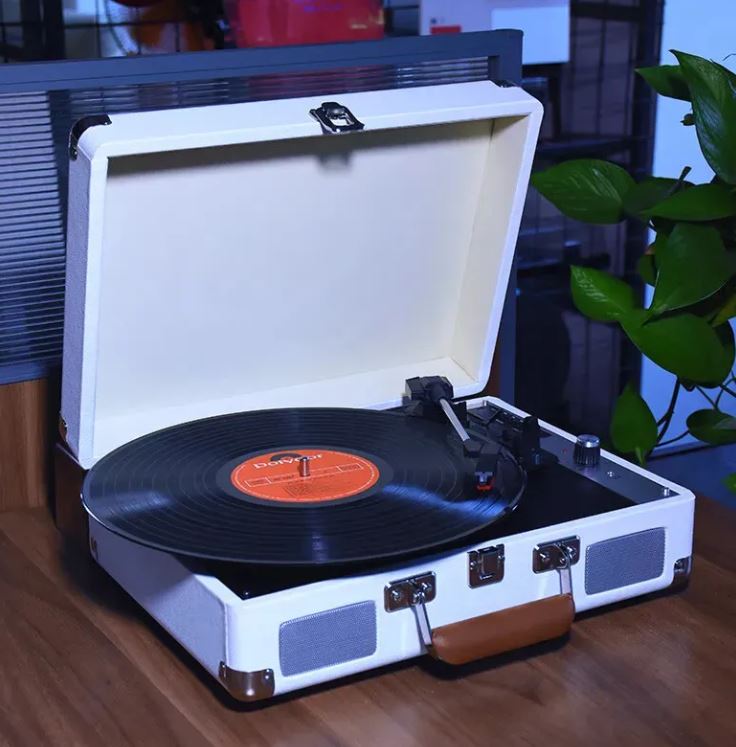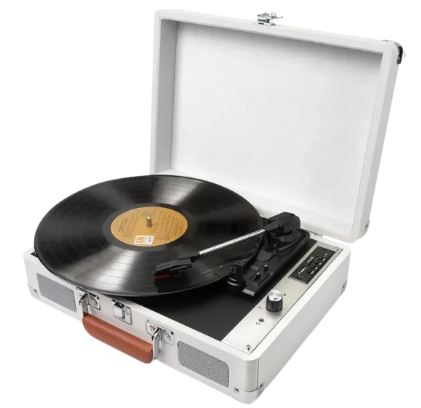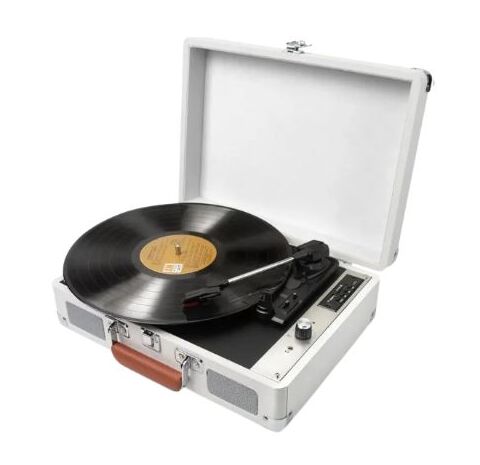 Этот портативный граммофон воспроизводит 33, 45 и 78 записи с функцией автоматической остановки, удовлетворяя различные музыкальные предпочтения.