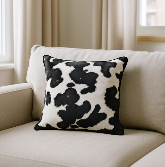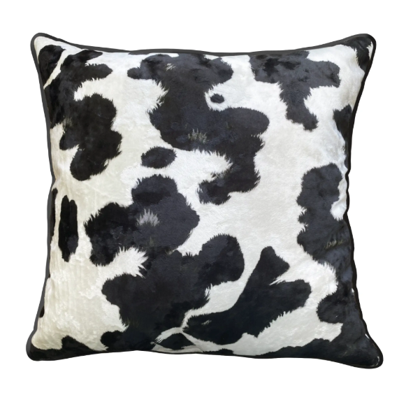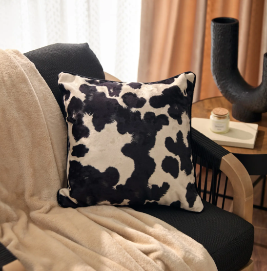 ВАЙЛД, подушка декоративная, бархат, 40х40 см, принт коровья шкура, черно-белый