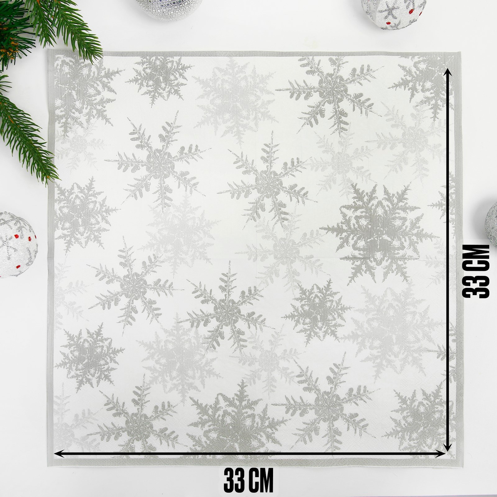 "Снежинки", салфетки бумажные, набор 20 шт., серебряный
