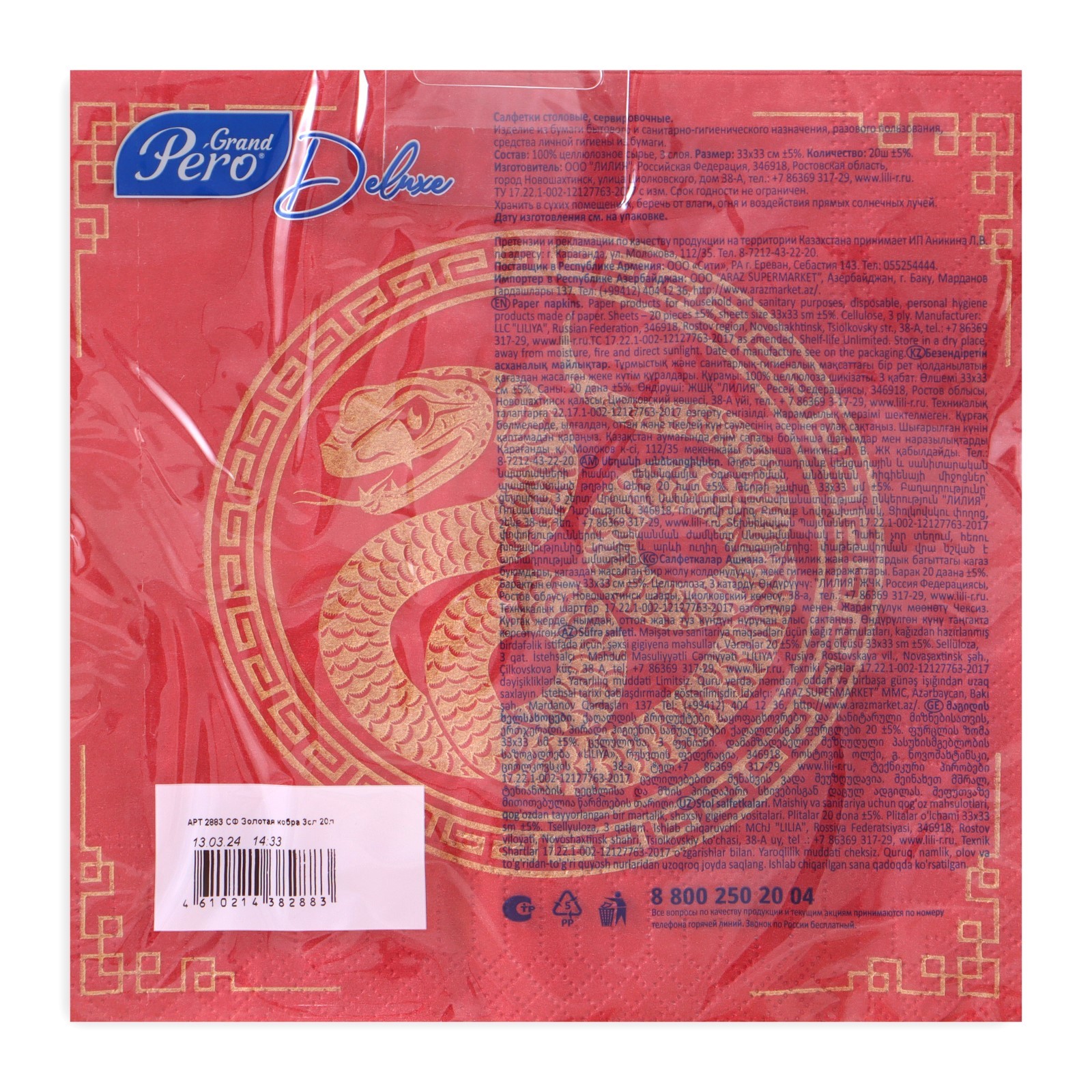 Если вы хотите, красиво и со вкусом украсить новогодний стол — салфетки с тематическим принтом обязательно займут на нём своё почётное место. Эта деталь придётся по душе всем гостям, которые непременно почувствуют праздничную и уютную атмосферу. Качественные трехслойные бумажные салфетки изготовлены из 100% целлюлозы.