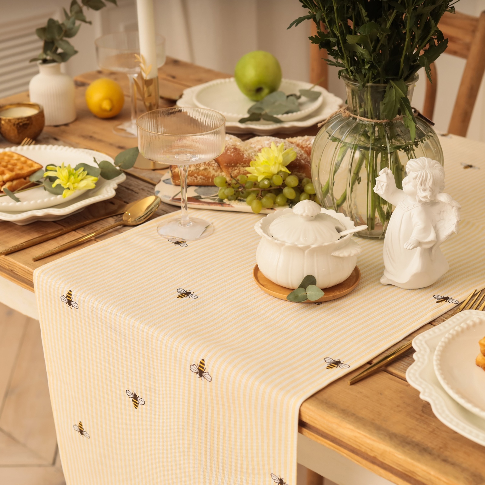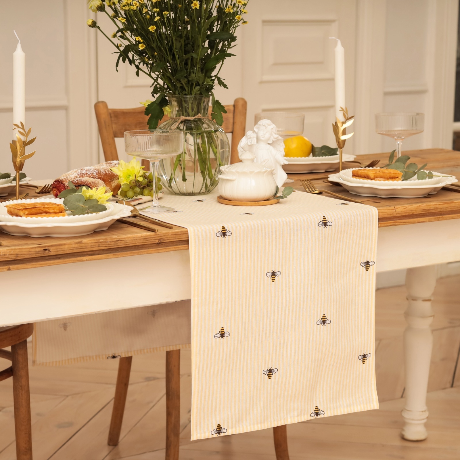 ПЧЁЛКИ, дорожка на стол, 40х146 см, хлопок, желтый
