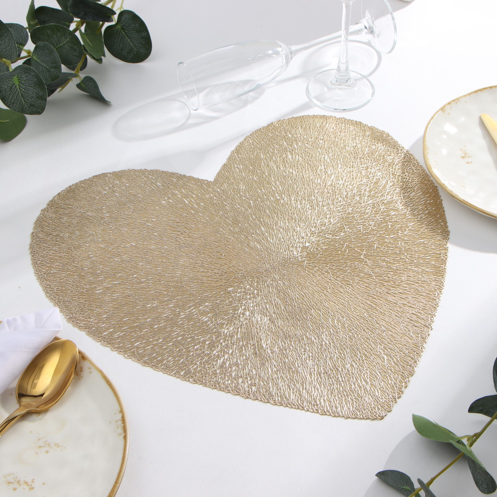 "Сердце", салфетка сервировочная Доляна, золото, d 38 см