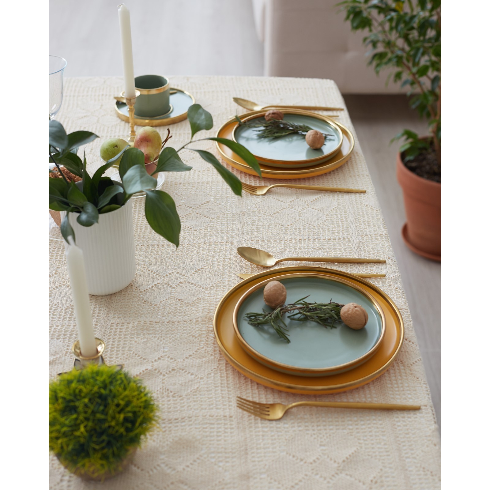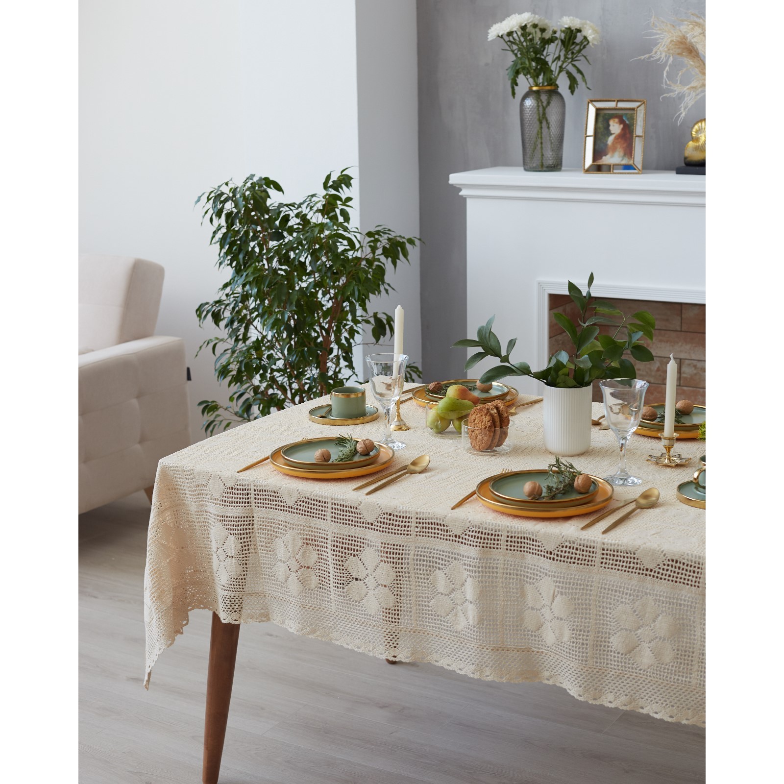 Квадратная форма размером 85х85 см идеально подходит для небольших столов, сервировочных столиков или комодов.