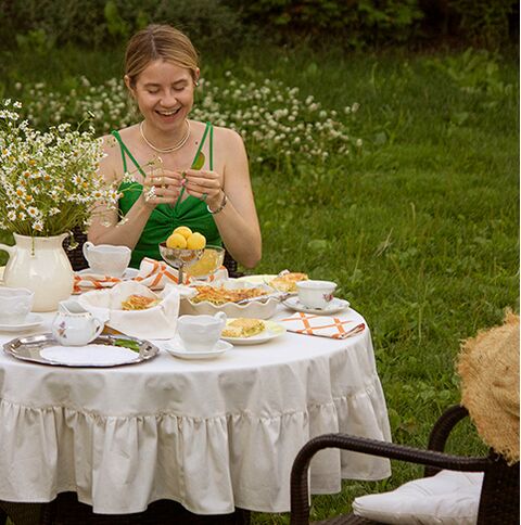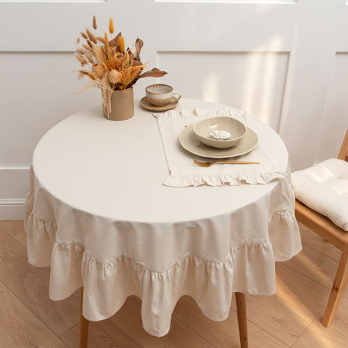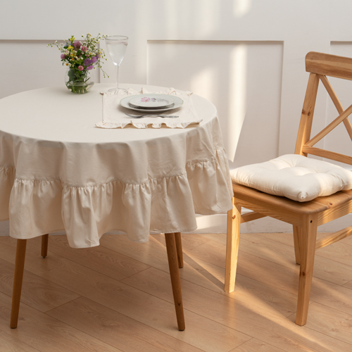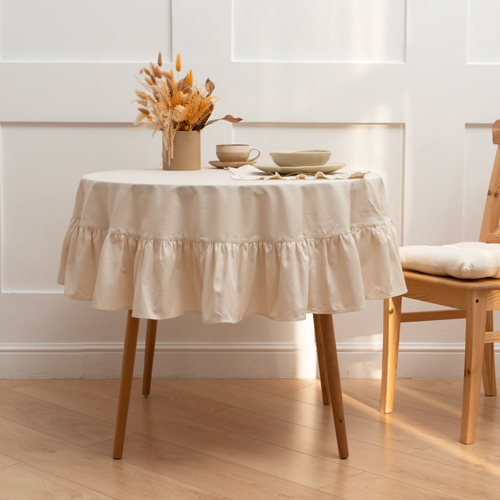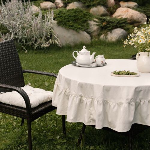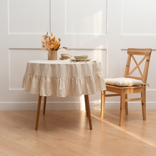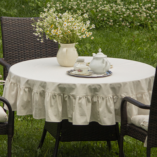 ЧИСТЫЙ ХЛОПОК, скатерть круглая с рюшами, 150 см, натуральный
