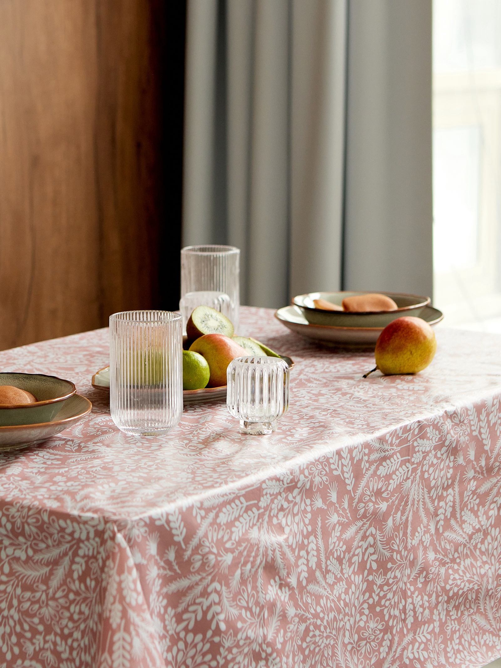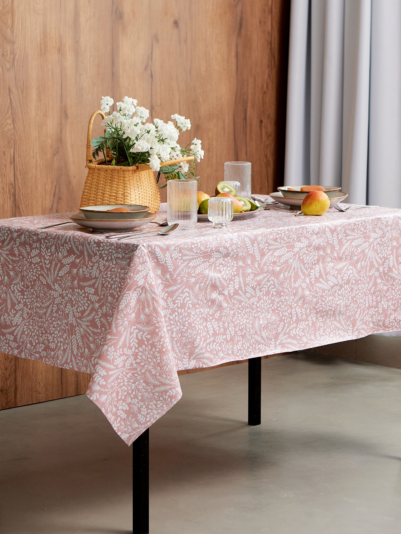 Розовая скатерть из ПВХ для праздничного стола создаёт нежный фон, подчёркивающий красоту угощений и цветов. Её гладкая поверхность легко очищается от случайных капель, а после застолья скатерть достаточно протереть влажной губкой — глажка не потребуется. Универсальный цветочно-растительный рисунок гармонично дополнит сервировку к 8 Марта, дню рождения или семейному торжеству.