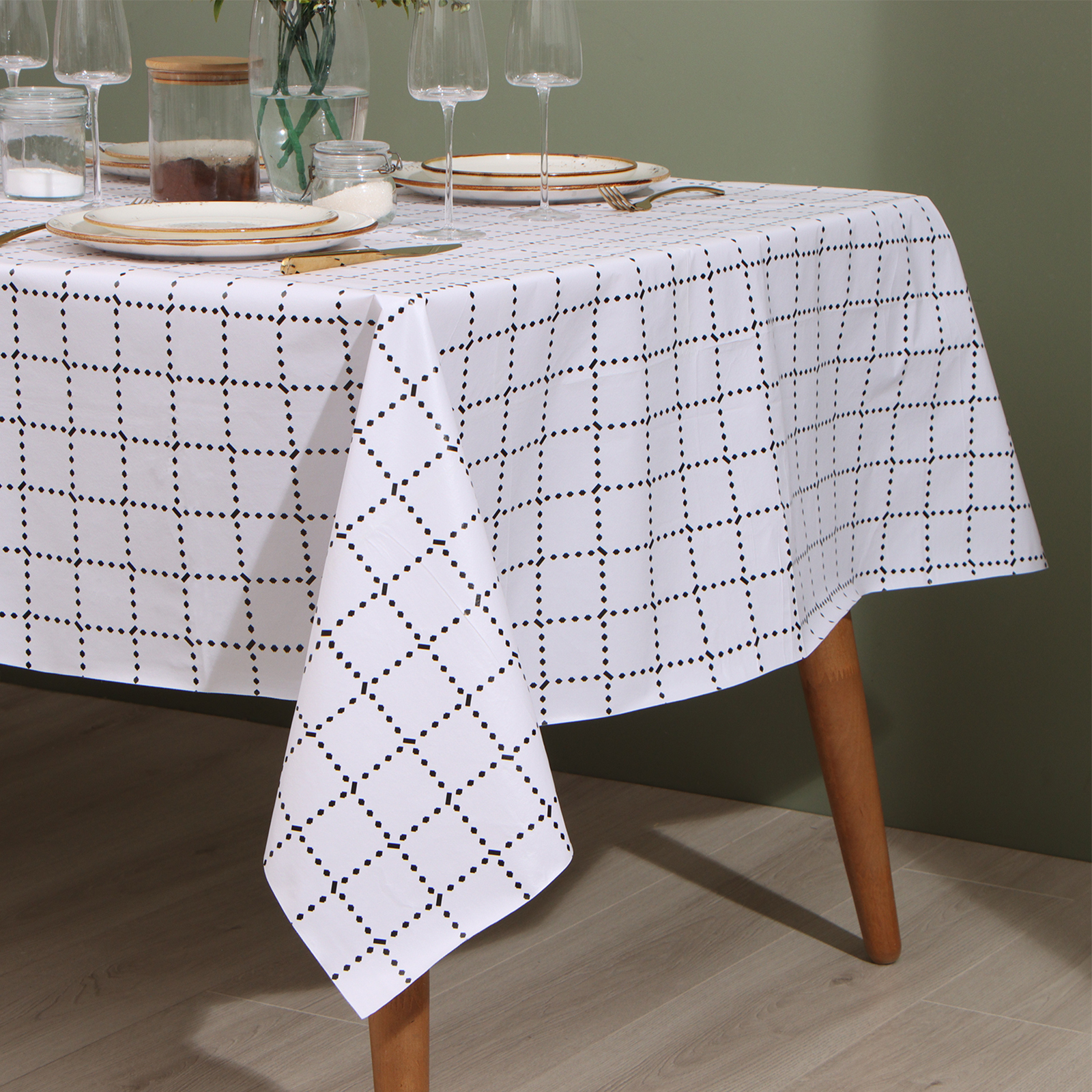 КЛЕТКА, скатерть клеёнчатая, ПВХ, 137х180 см, белая/в клетку
