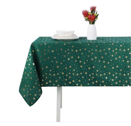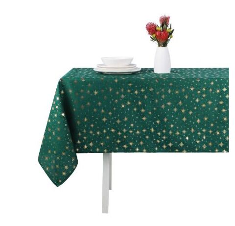 Скатерть текстильная с фольгированным принтом PROVANCE Щелкунчик размером 140х180 см из 100% полиэстера – это эстетичный столовый текстиль для сервировки новогоднего и рождественского стола. Серия включает 2 дизайна в классических праздничных цветах – зеленом и красном. Яркий фольгированный золотистый принт со звездами создает эффектное мерцание и делает обстановку по-настоящему торжественной. Скатерть из полиэстера не мнется, легко стирается и быстро сохнет. Станет прекрасным фоном для разнообразных комплектов посуды, столовых и приборов и других элементов сервировки. Размер оптимален для стола на 6 персон.