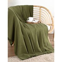 ВАФФЛ, плед/покрывало вафельное, хлопок, 220х240 см, зеленый