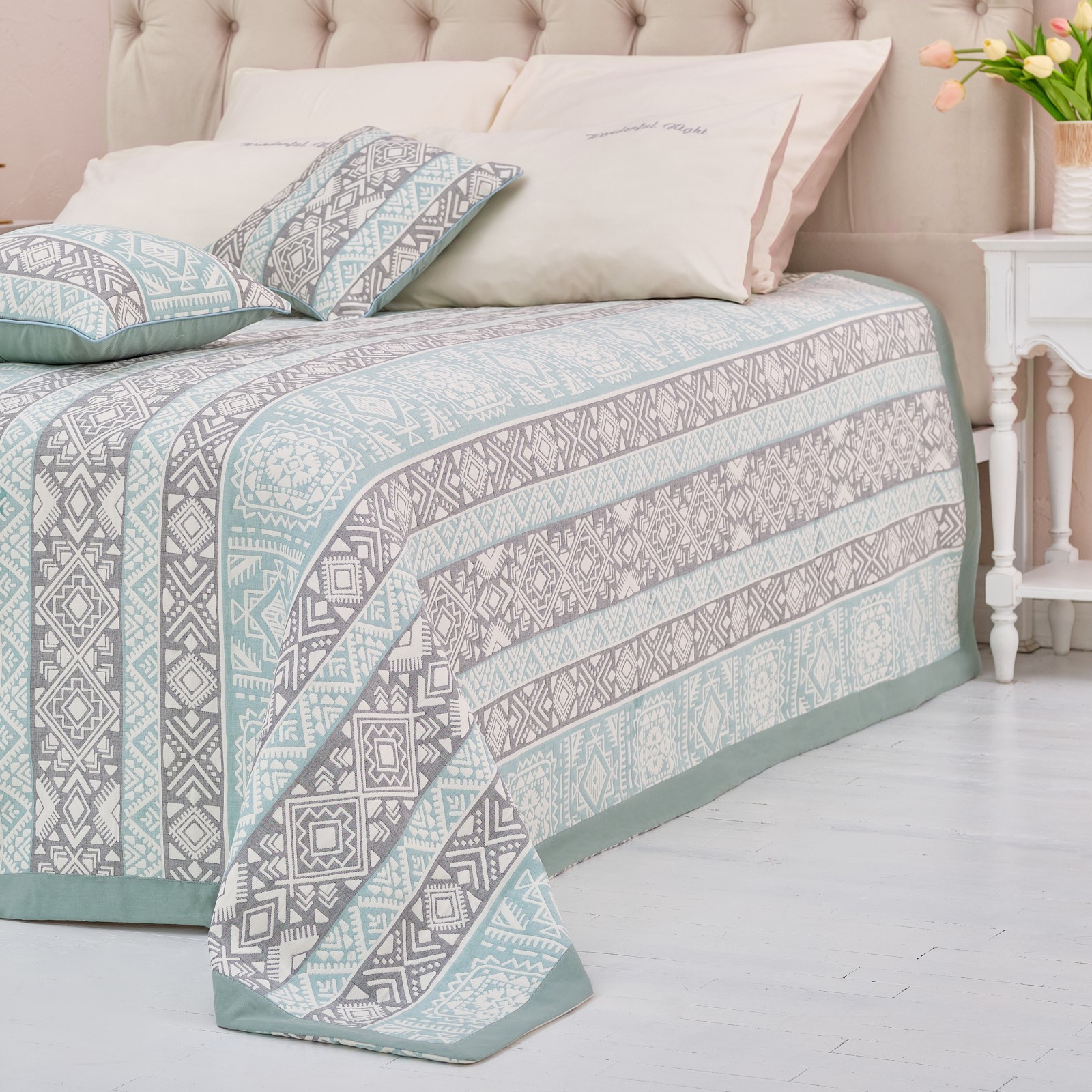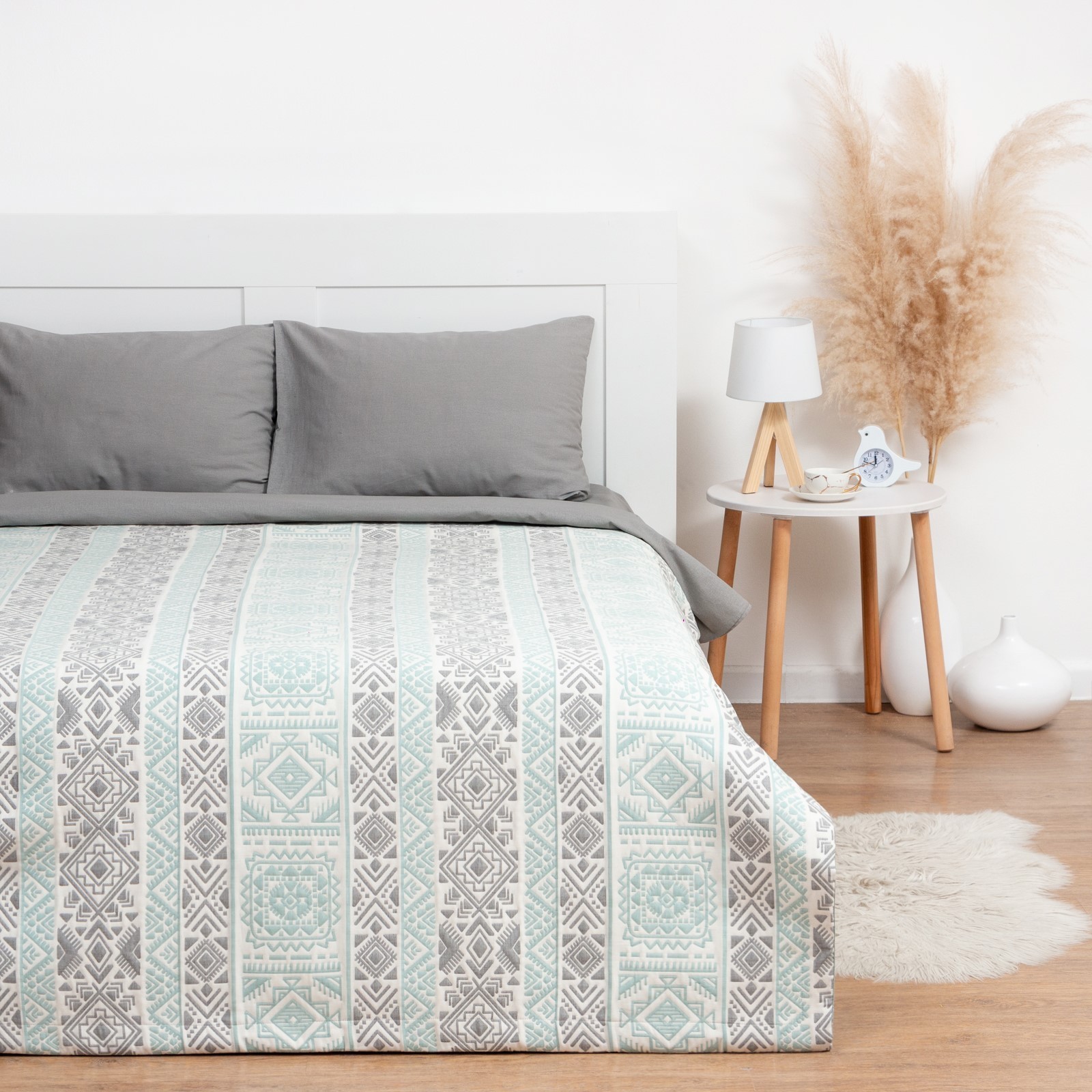 "Инди", покрывало хлопковое Этель, 180х240±5 см, серо-зеленый, 100%хлопок, 300гр/м2