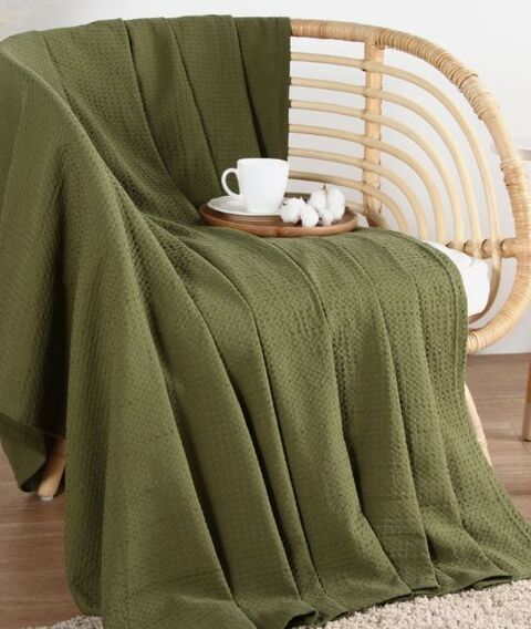 ВАФФЛ, плед/покрывало вафельное, хлопок, 220х240 см, зеленый