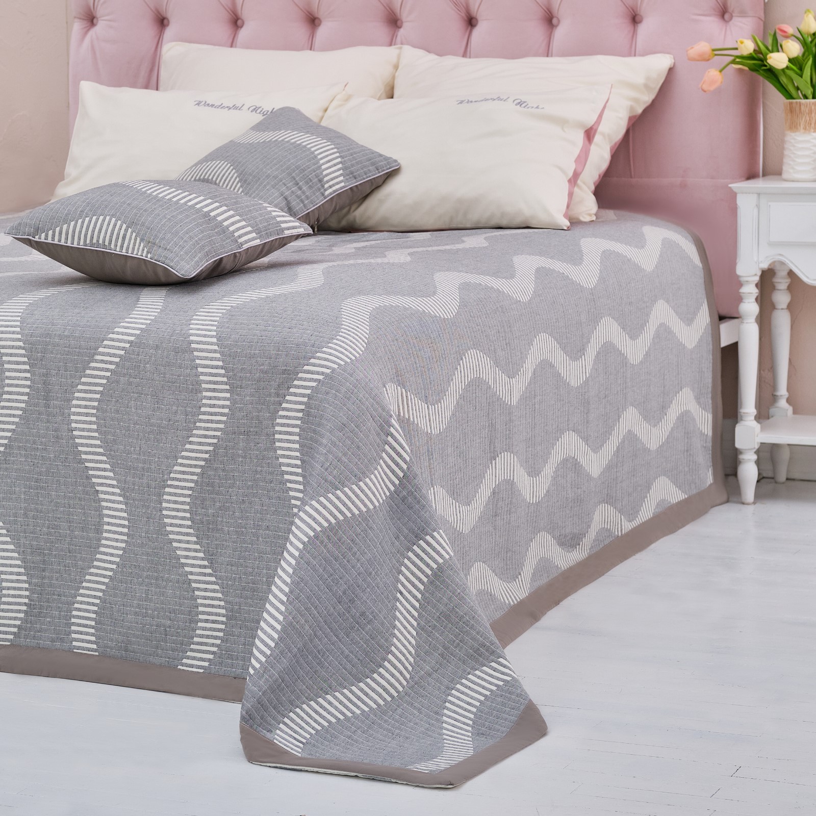 "Волны", покрывало хлопковое Этель, 200х240±5см, серый, 100%хлопок, 300гр/м2