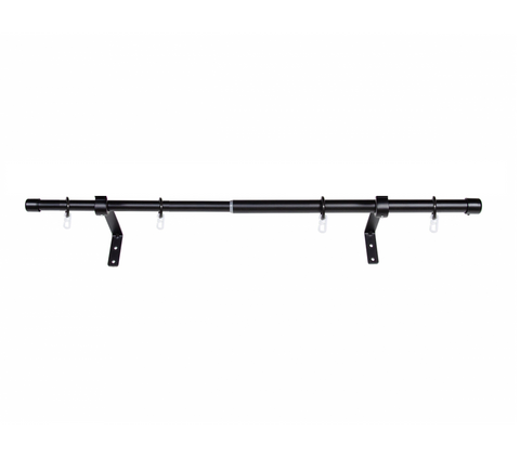 В комплект входят кронштейны, карниз, кольца и крючки.