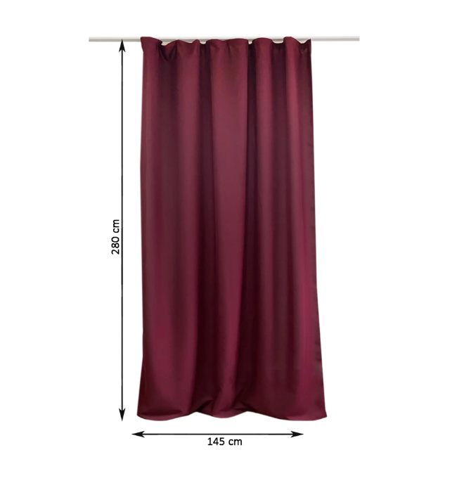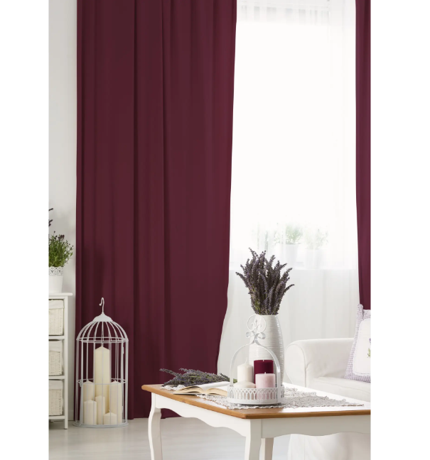 Комплект штор на ленте 145x280 см цвет бордо 2 шт. предназначен для использования в спальне и обеспечивает приглушение света. Шторы изготовлены из габардина, который является прочной и долговечной тканью.