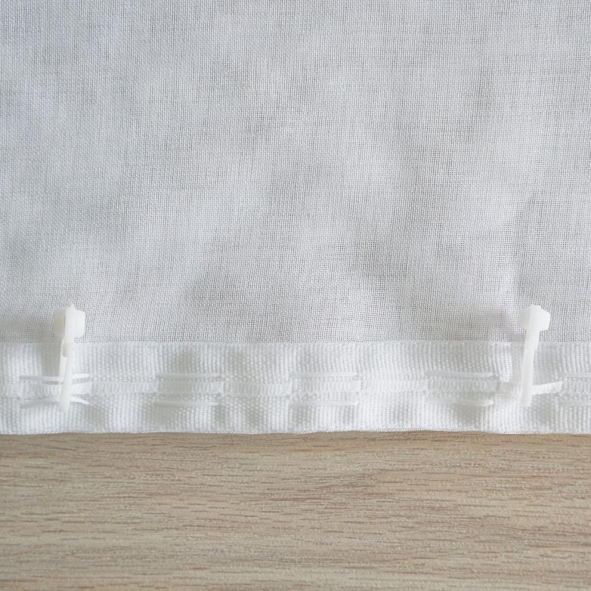 К шторе пришита шторная лента шириной 2 см, крепление к карнизу на крючки. Внутри шторной ленты пропущен шнур-корд для стягивания, он позволит красиво задрапировать складки.