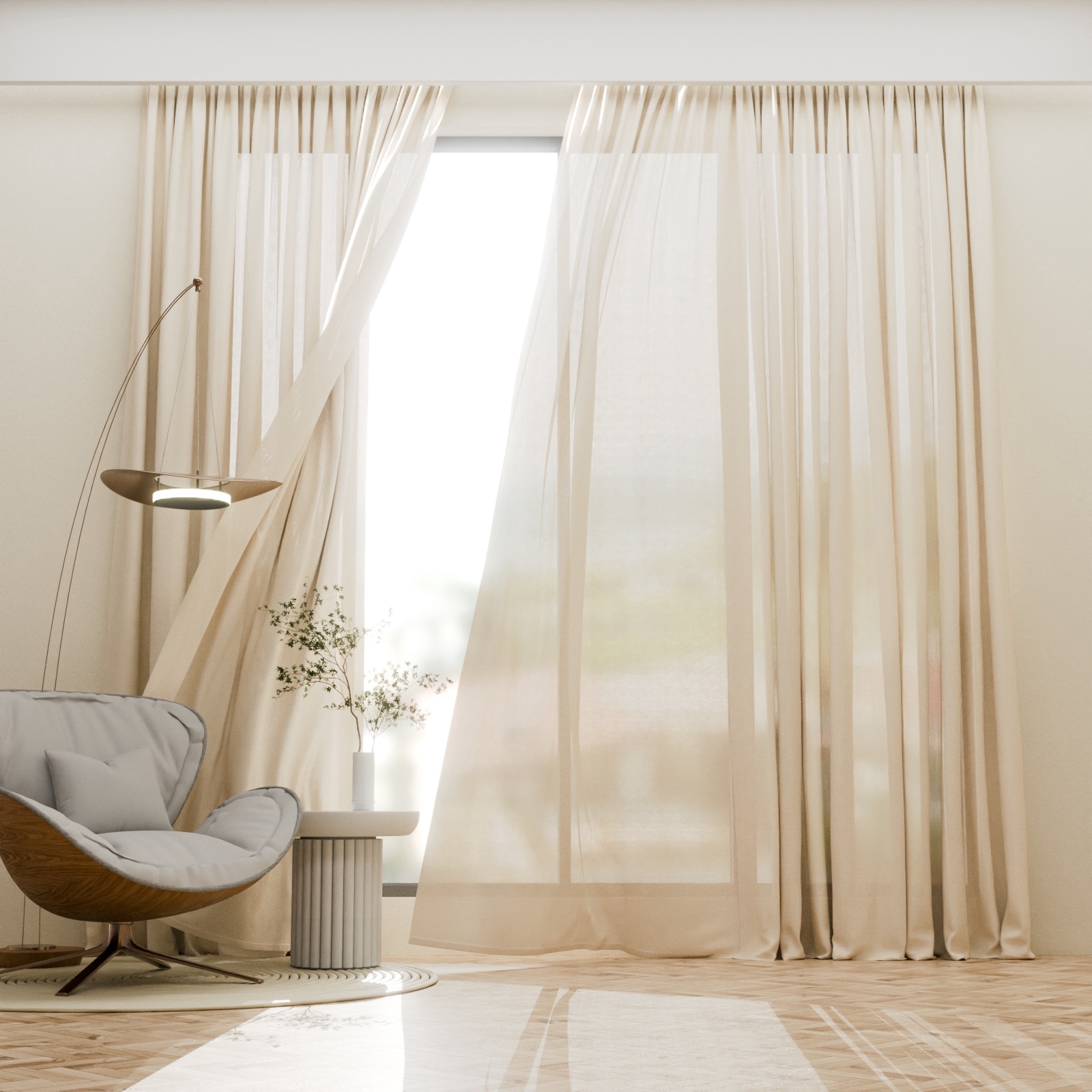 Молочный цвет шторы легко сочетается с различными интерьерами, создавая светлую и воздушную атмосферу. Она также обеспечит умеренную защиту от солнечного света.