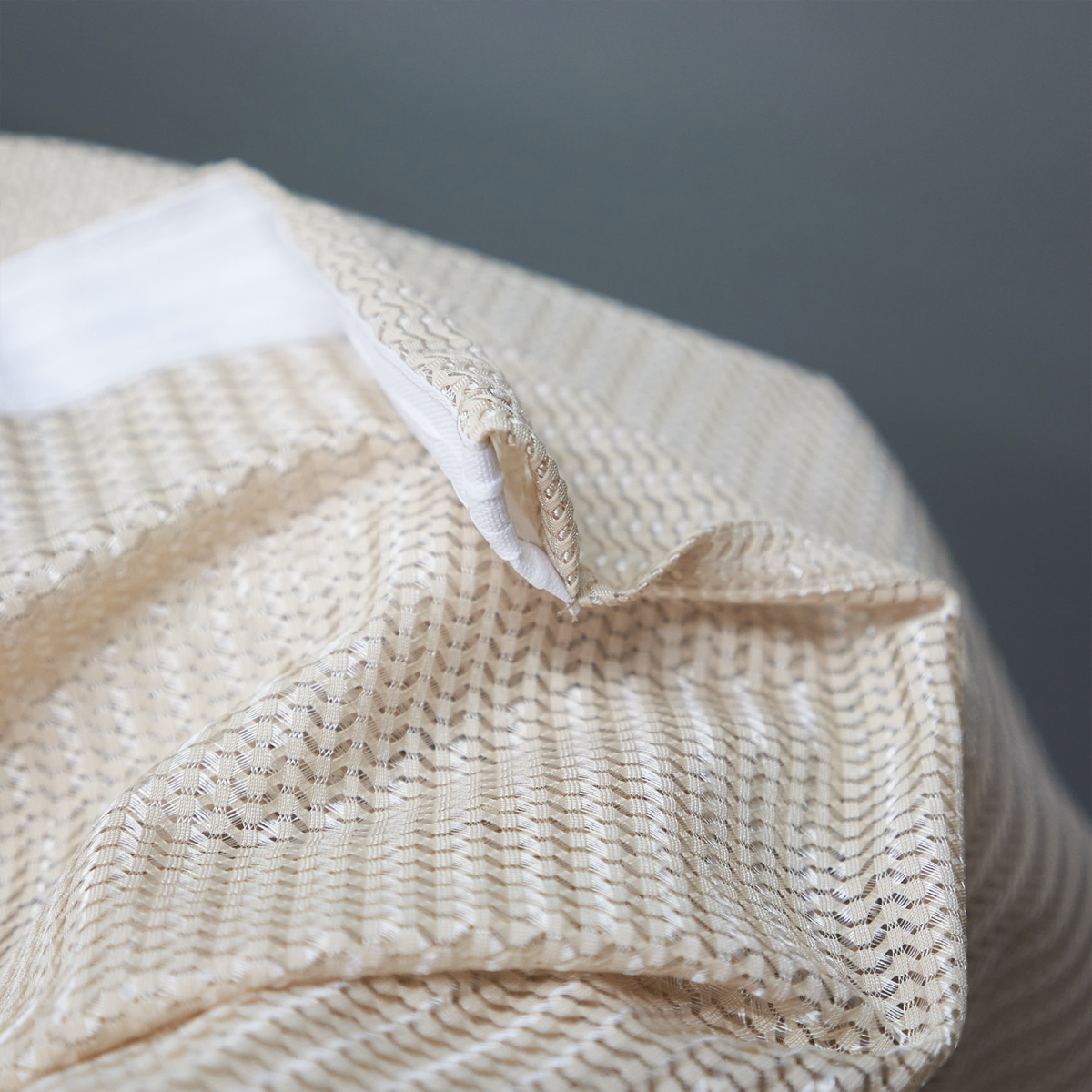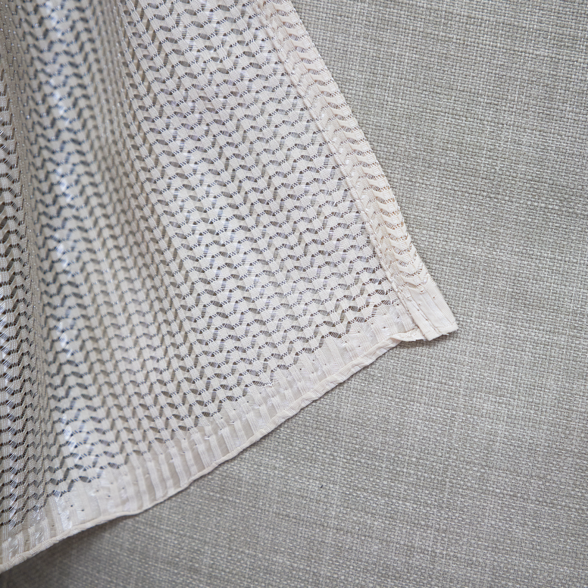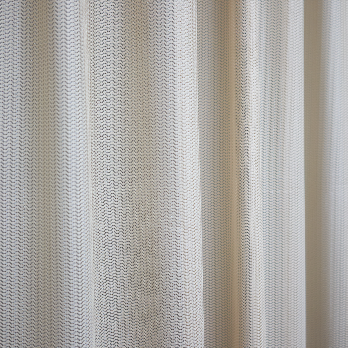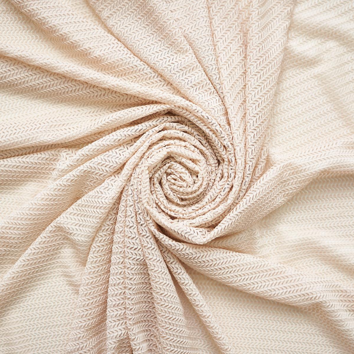 Шторы тюль от WITERRA из коллекции “Волна” сшиты из трикотажного полотна. Они плотные и, в отличие, от традиционных тюлей, типа вуаль или лён немного тяжелее. Имеет очень необычное зигзагообразное плетение “ёлочка”. По составу 100% полиэстер.