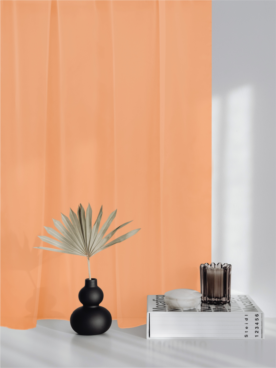 Данные шторы сшиты из тюля вуаль. Ткань мягкая, легкая, очень приятная на ощупь, элегантно драпируется. Имеет матовую полупрозрачную поверхность, прекрасно пропускает воздух и рассеивает солнечный свет.