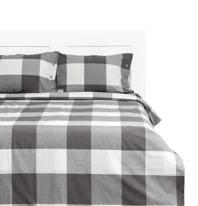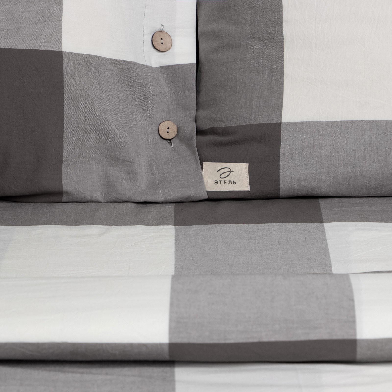 ЖАТЫЙ ХЛОПОК, комплект постельного белья, 1,5 сп, хлопок, серая клетка крупная
