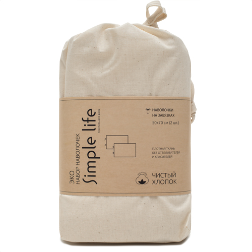 ЧИСТЫЙ ХЛОПОК, набор наволочек на завязках, 2шт, 50х70см, поплин
