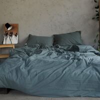 Листва, комплект постельного белья, евро, жатый хлопок, тёмно-зелёный