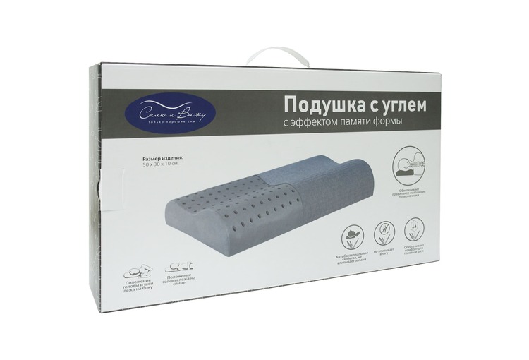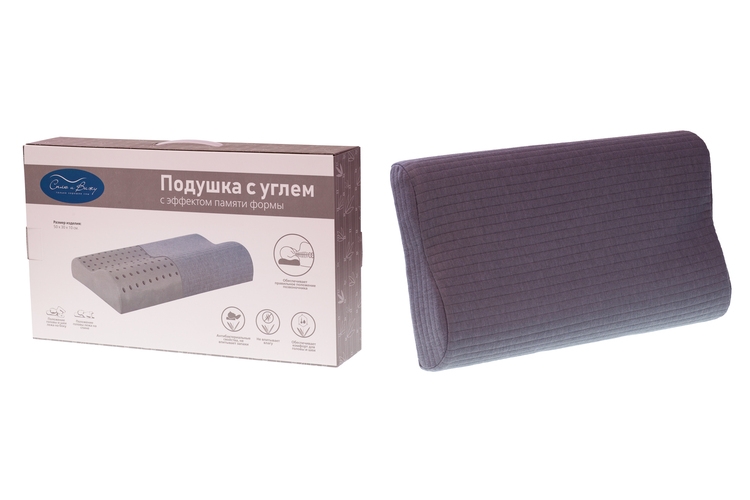 СИВ, подушка анатомическая, 50х30х10/7см, с эффектом памяти, серый
