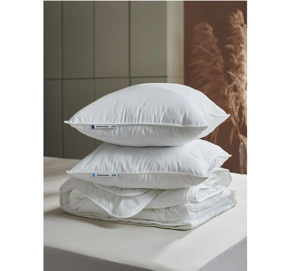 Высокая простая в уходе подушка с чехлом из хлопка и лиоцелла и наполнителем из полого полиэстерного волокна, изготовленного из переработанного сырья.