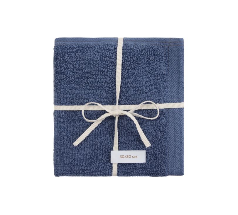 РИВЬЕРА, набор полотенец/салфеток для лица, 4 шт, 30х30 см, синий