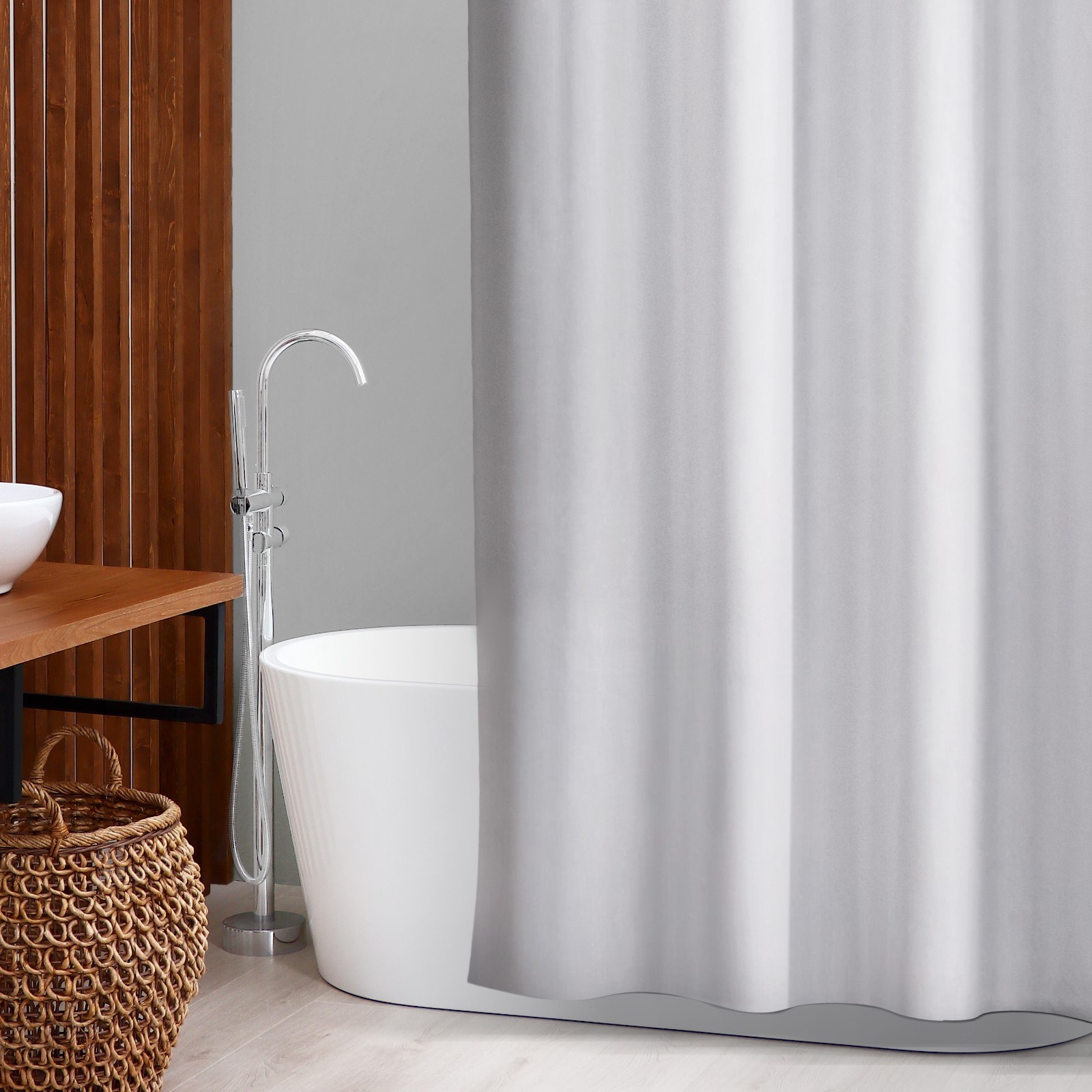 Водоотталкивающая тканевая штора - универсальный аксессуар для ванной комнаты, выполненная из плотного полиэстера с водоотталкивающей пропиткой.