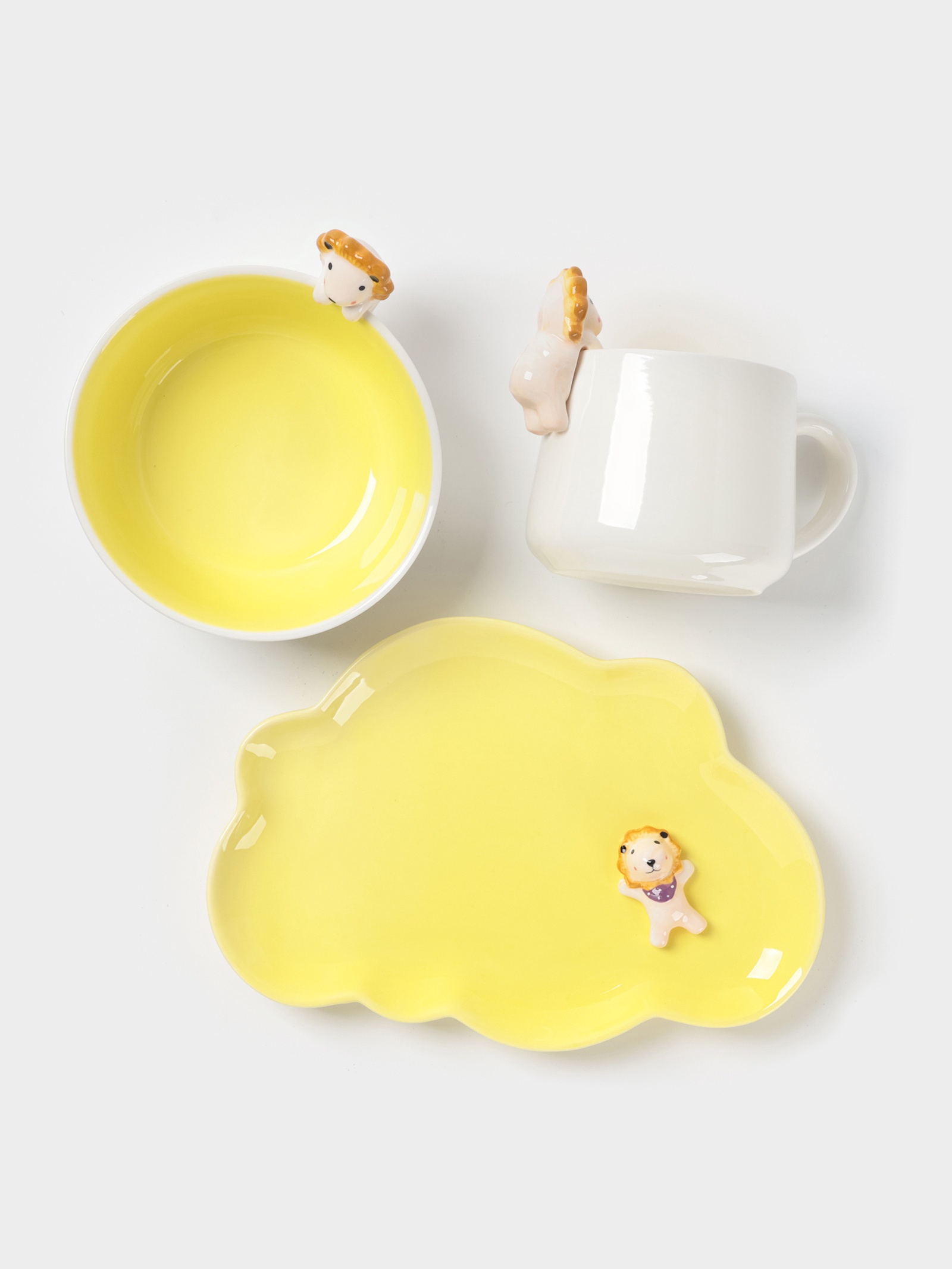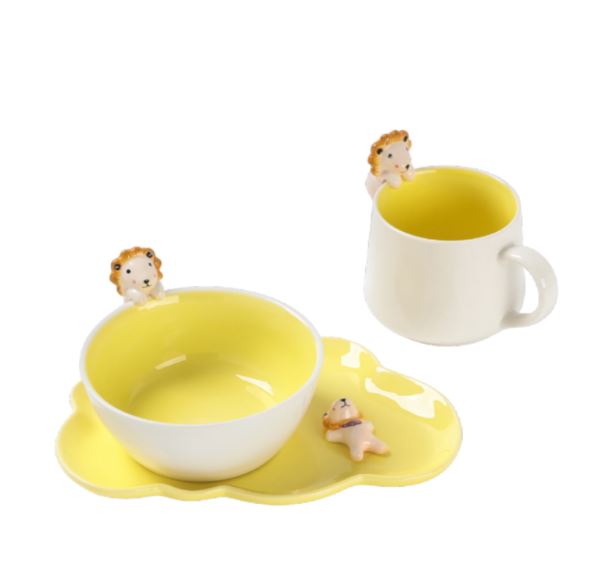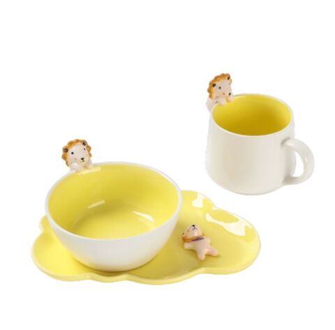 Превратите каждый прием пищи в увлекательное приключение с этим ярким набором детской посуды! В комплект входят: кружка (350 мл), супница (450 мл) и тарелка, выполненные из безопасной керамики. Желтый цвет и фигурка львенка обязательно понравятся вашему малышу. Можно использовать в микроволновой печи и посудомоечной машине, что делает уход за посудой максимально простым.