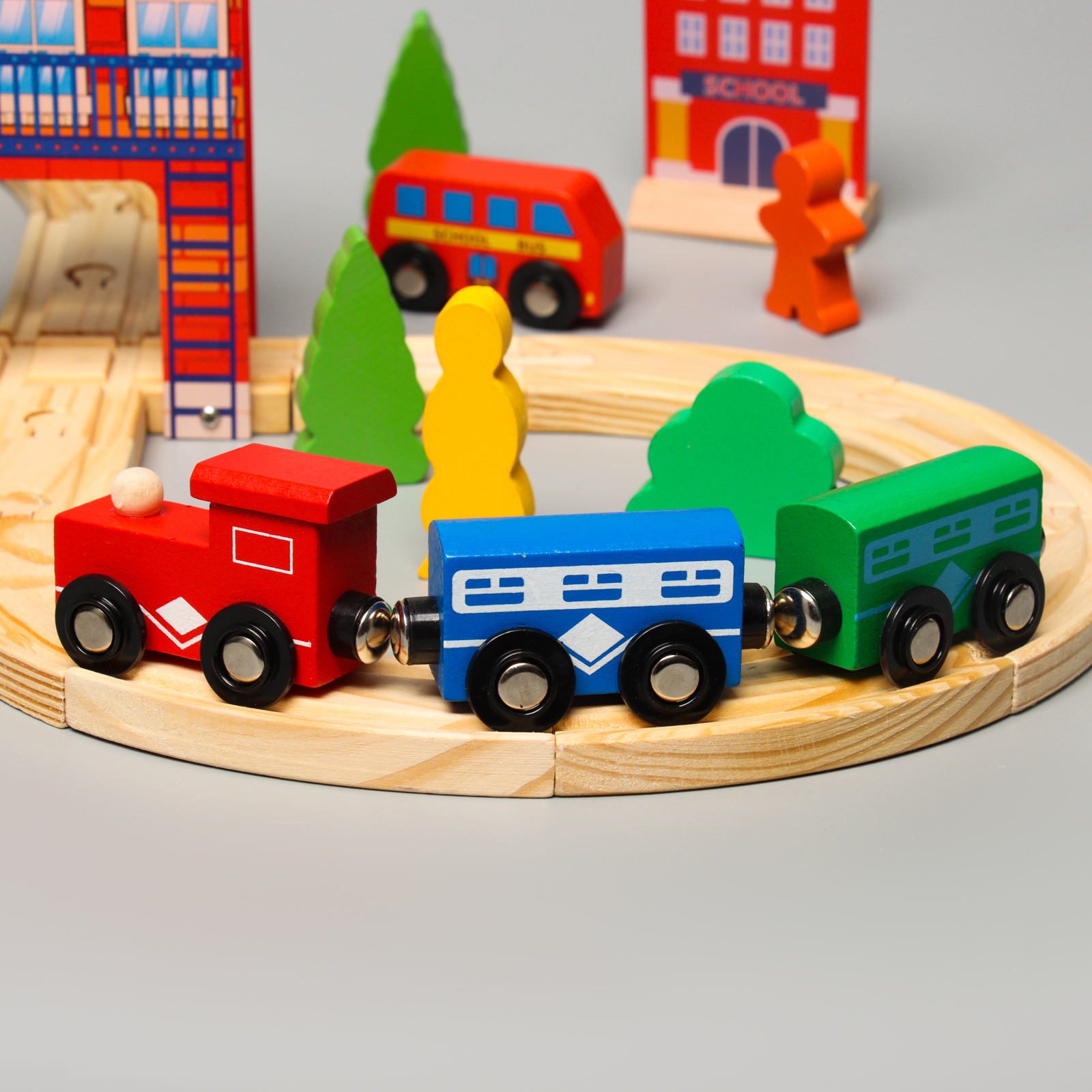 Вагоны и паровоз имеют магнитные элементы.