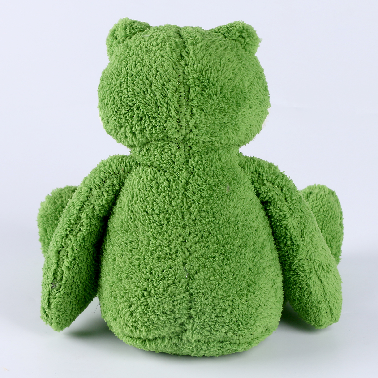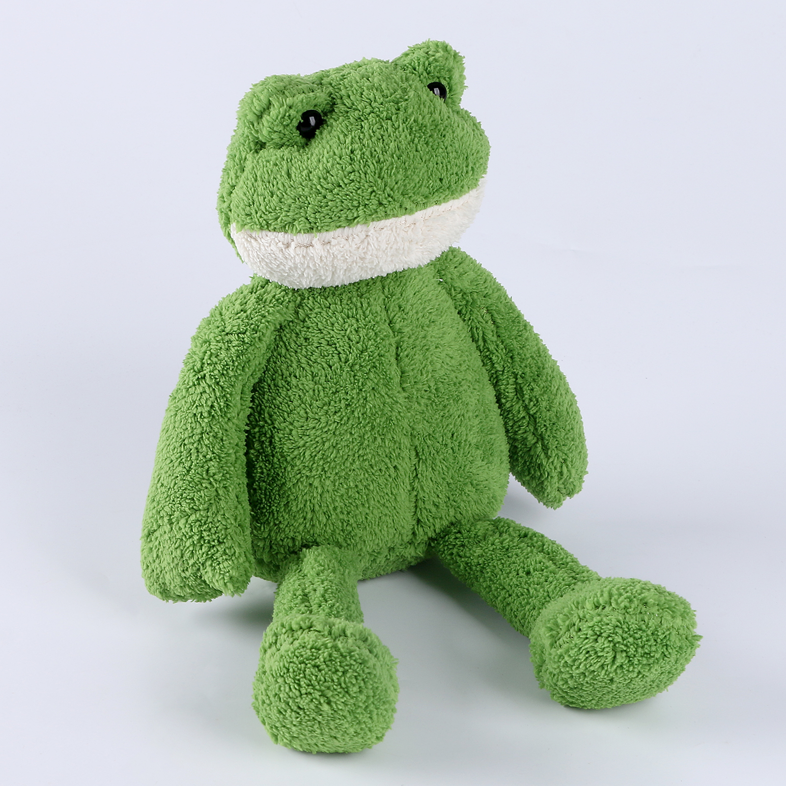 Игрушка выполнена из мягкого полиэстера с фактурным ворсом, который приятно ощущается в руках. Лягушку хочется трогать, сжимать, держать рядом во время отдыха или сна. Наполнитель распределён так, чтобы игрушка оставалась мягкой, но не теряла форму.