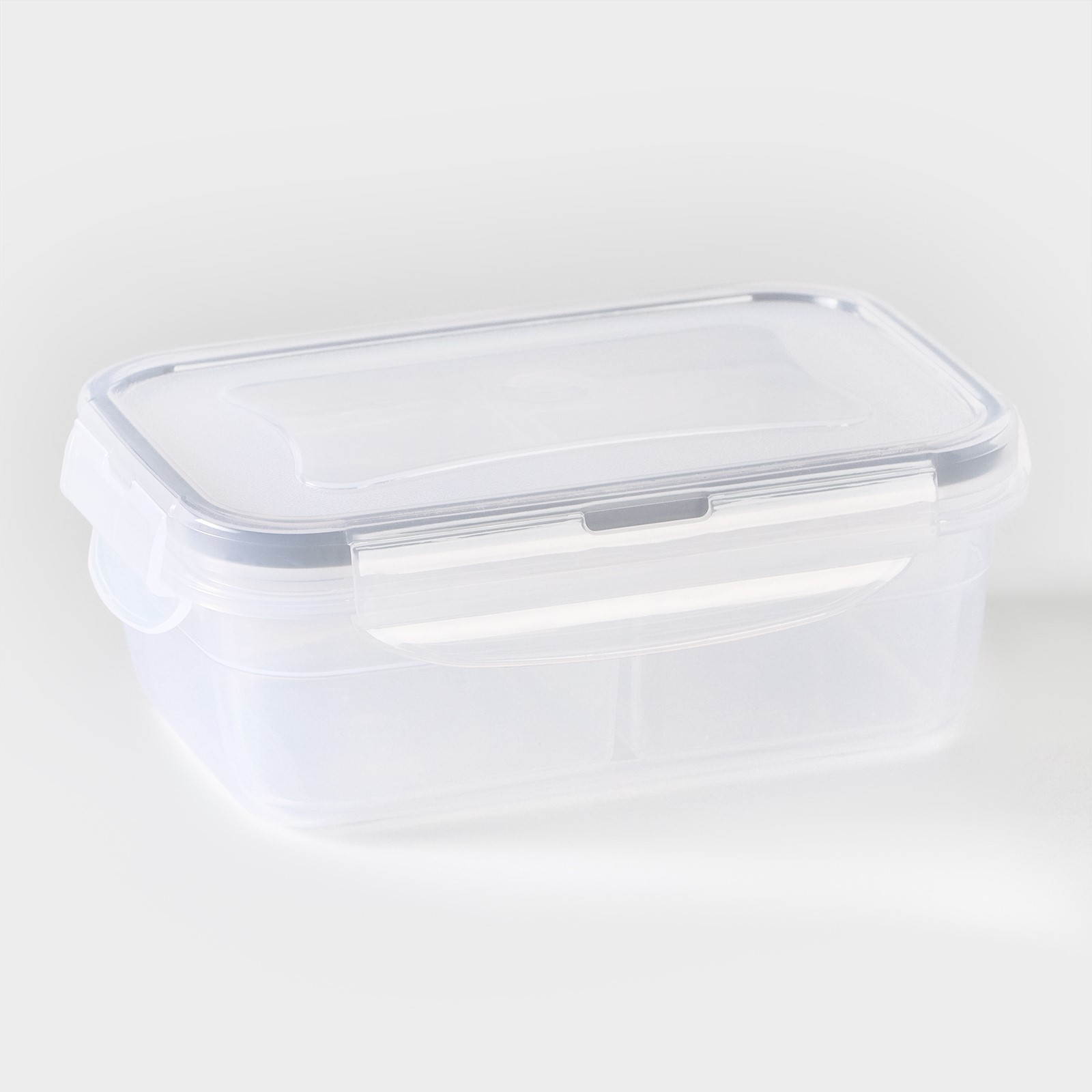 Пластиковый ланч-бокс оснащен герметичной крышкой.
