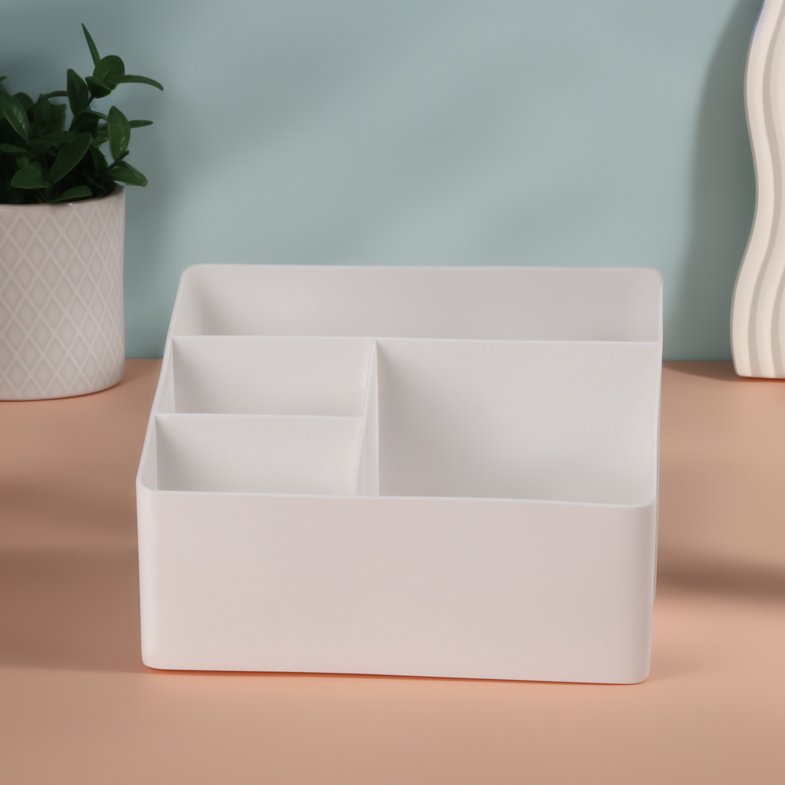 Если вы ищете стильное и удобное решение для хранения мелочей, органайзер «WHITE» от QF — ваш идеальный выбор. Благодаря своему минималистичному дизайну и белому цвету, он гармонично впишется в любой интерьер, будь то ванная комната, спальня или рабочее место. С четырьмя секциями, этот органайзер позволяет легко организовать пространство для хранения косметики, канцелярских принадлежностей и других необходимых вещей.
