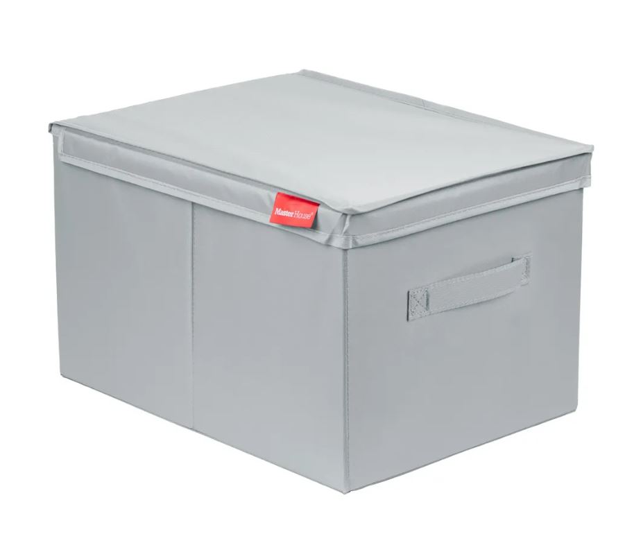 Складной короб для хранения с откидной крышкой и ручкой.