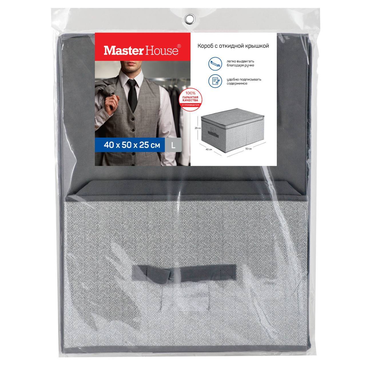 Складной короб с откидной крышкой, ручкой и прозрачным кармашком для заметок. Размер 40x50x25 см.