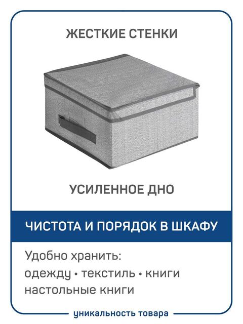 Складной короб с откидной крышкой, ручкой и прозрачным кармашком для заметок. Размер 30x40x25 см.
