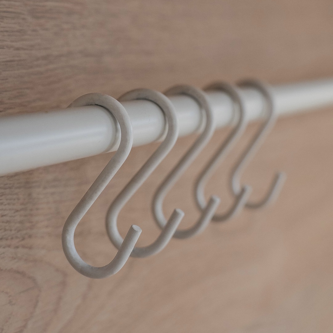 Комплект крючков малых из 5 шт Крючок предназначен для хранения полотенец и других мелких предметов на кухне и в ванной комнате, а также в гараже или гардеробной для хранения вещей. Легко устанавливаются на рейлинги или ручки мебели. Не повреждают материал подвешиваемых предметов и поверхность, на которую установлены. Практичный цвет органично сочетается с любым выбранным стилем интерьера. Можно использовать в помещениях с высокой влажностью.