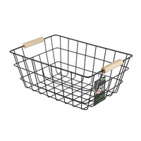 Корзина металлическая с деревянными ручками 20х20х10см, цв.черный