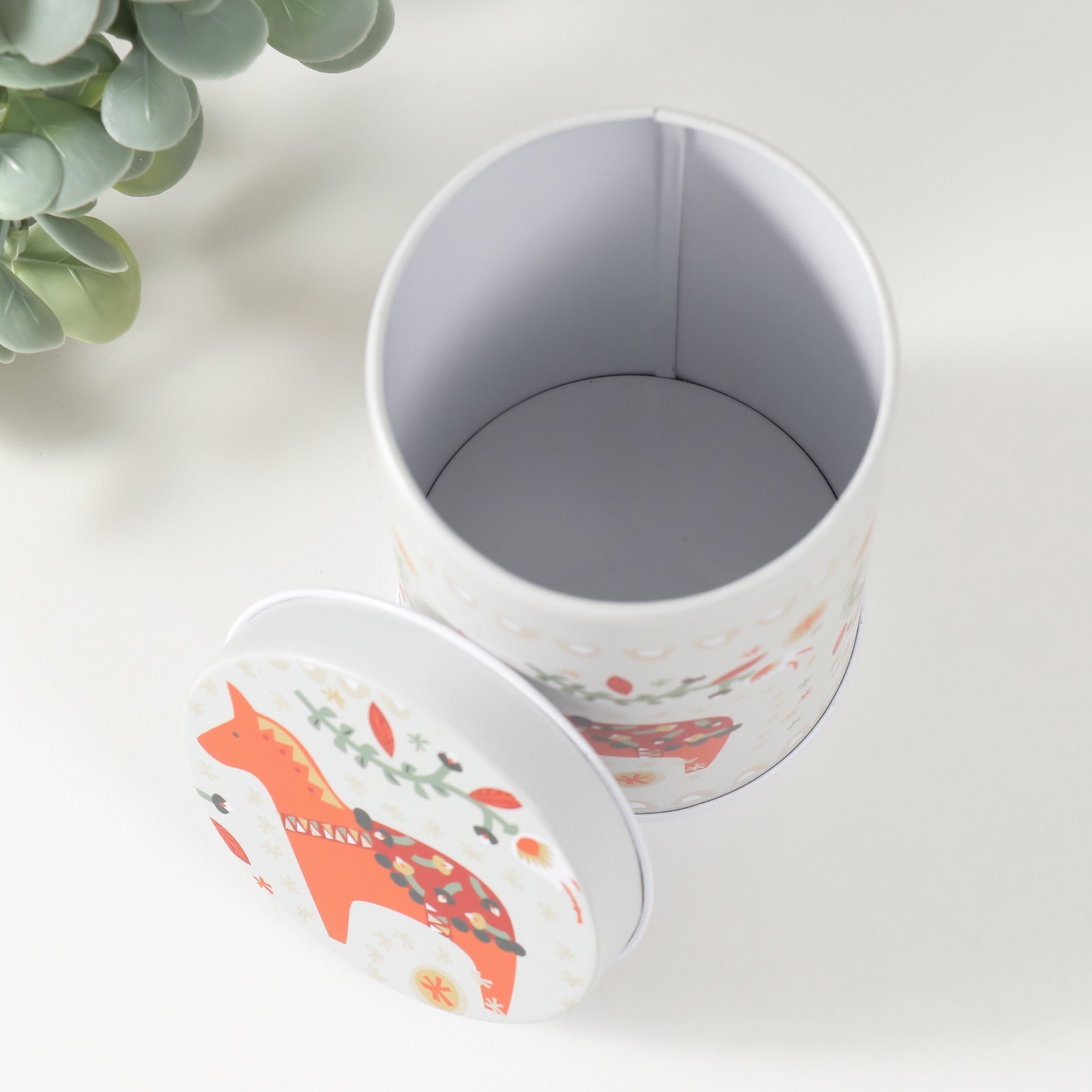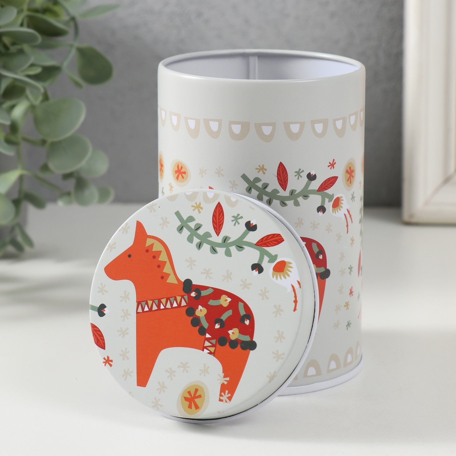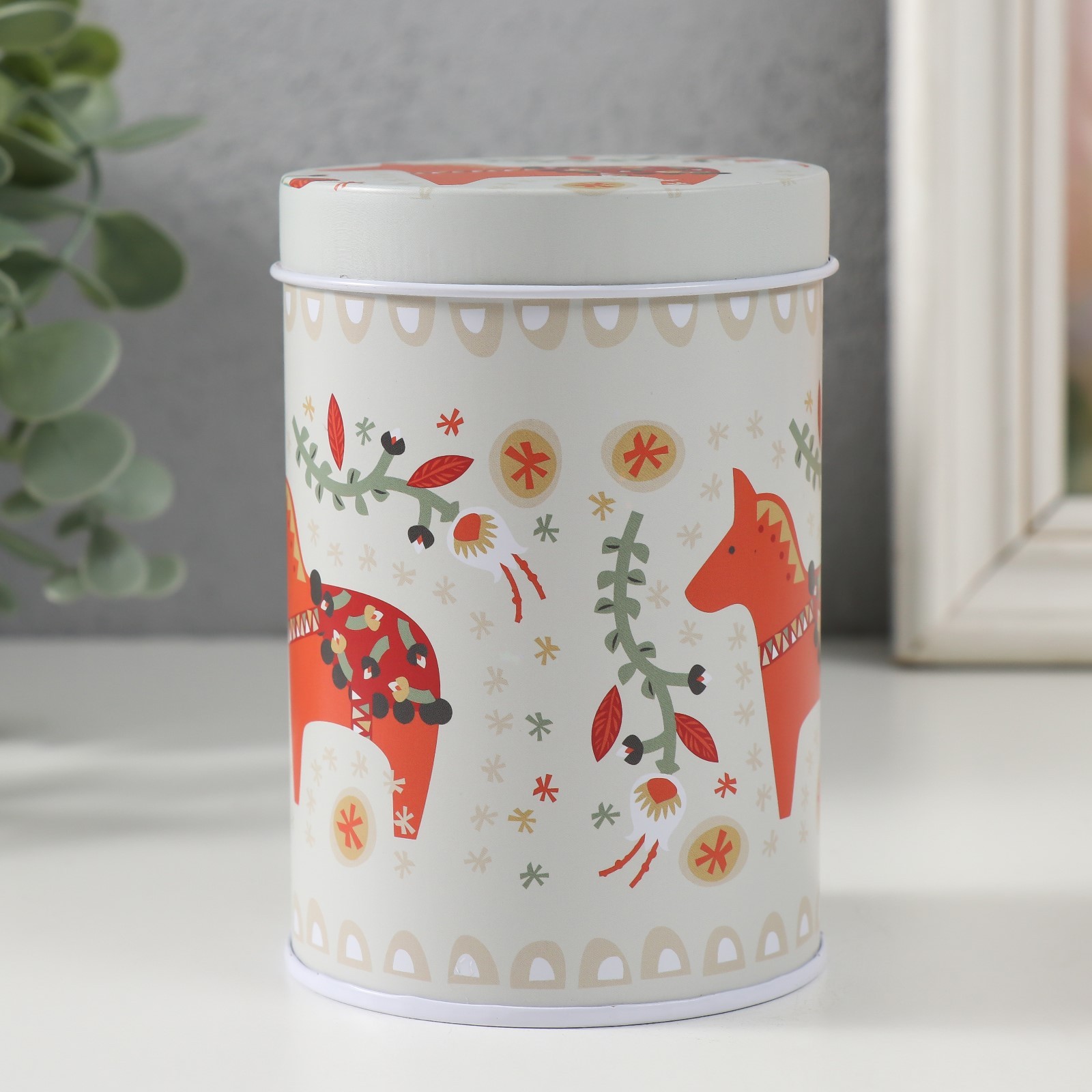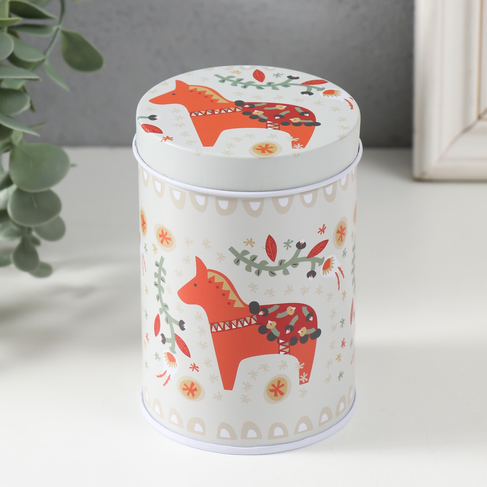 "Конек расписной", шкатулка металл цилиндр, 7,5х7,5х11см
