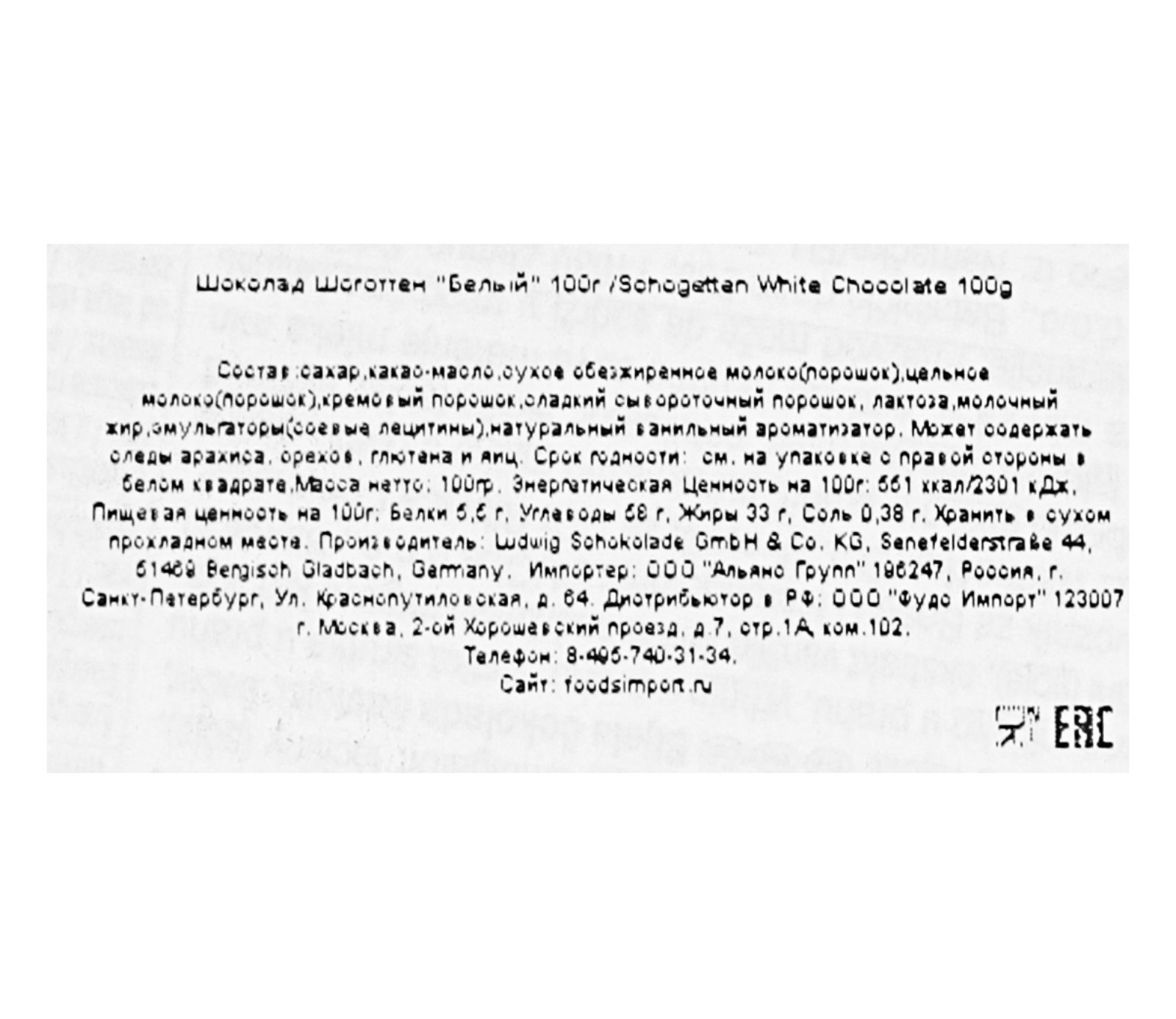ШОГЕТТЕН, белый сливочный шоколад, 100 г