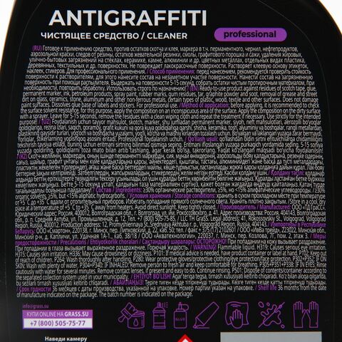 Готовое к применению средство, против остатков скотча и клея, маркера в т.ч. перманентного, чернил, нефтепродуктов, аэрозольной краски, следов от резины, остатков жевательной резинки, смолы, графитового порошка и сажи, удаления жировых, улично-бытовых загрязнений на стёклах, керамике, камне, алюминии и др. цветных металлах, отдельных видах пластика, деревянных, текстильных и др. поверхностях. Не повреждает лакокрасочные поверхности. Растворяет клеевую основу этикеток, наклеек, стикеров. Не имеет резкого запаха. Для профессионального применения