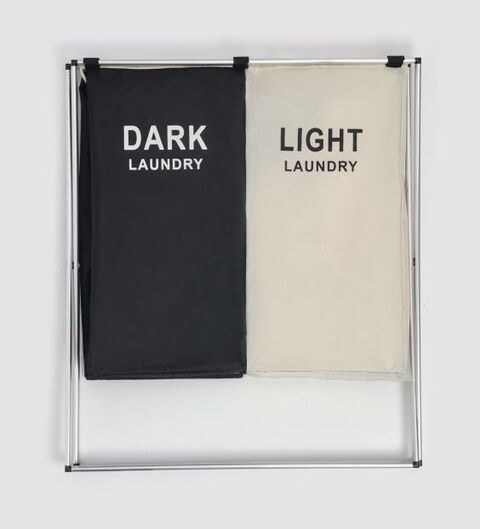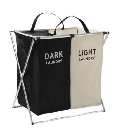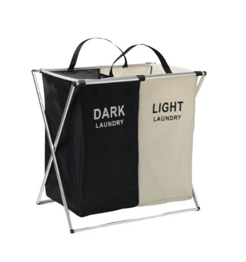ЛАУНДРИ, корзина для белья, складная, 2 отделения, 110 л, черный/бежевый
