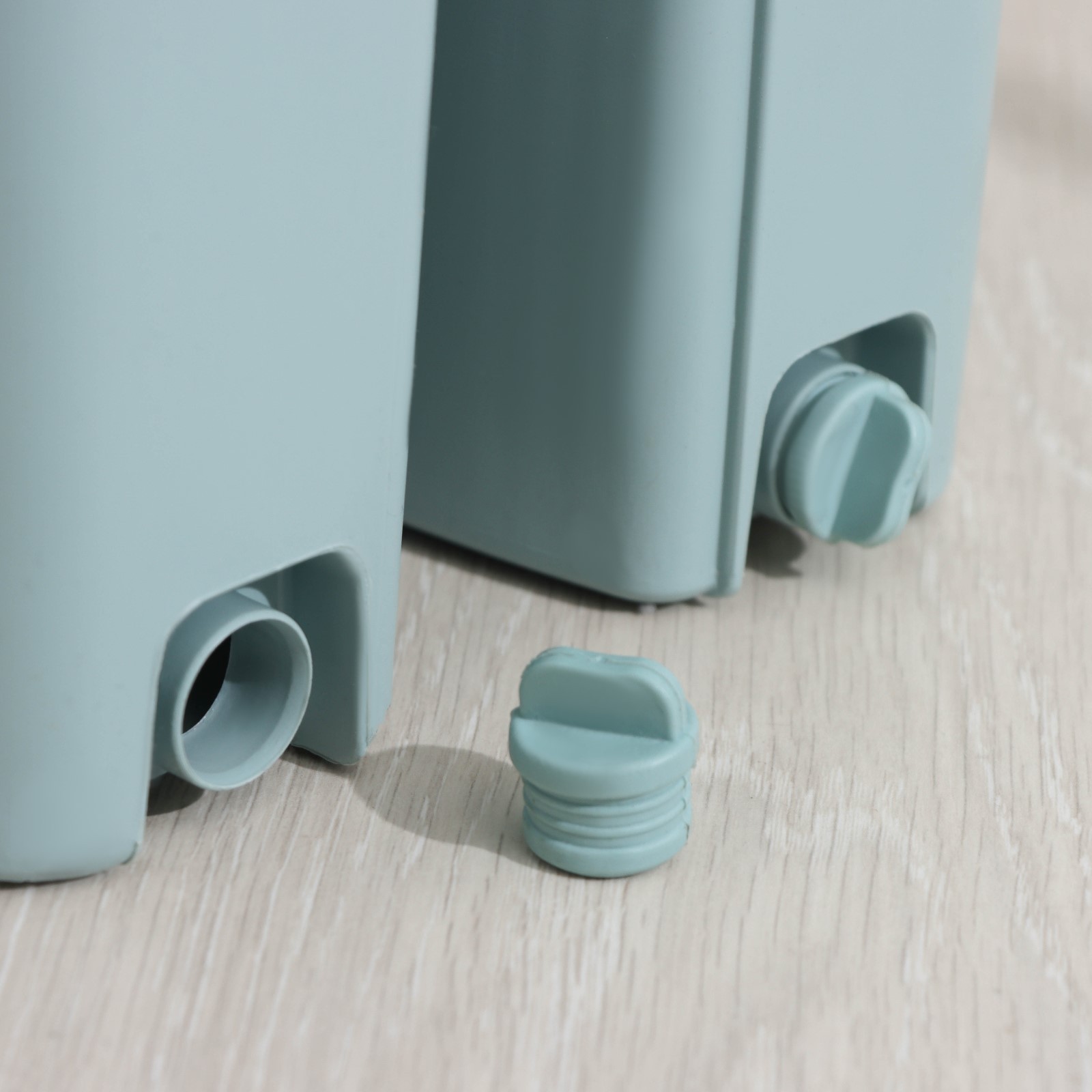 Комплект выполнен из качественных материалов: нержавеющая сталь и прочный пластик обеспечивают долговечность и надежность конструкции. Бирюзовый цвет добавляет эстетическую привлекательность, делая уборку приятнее.