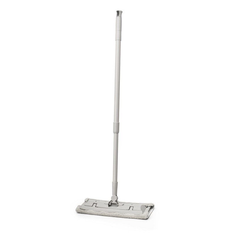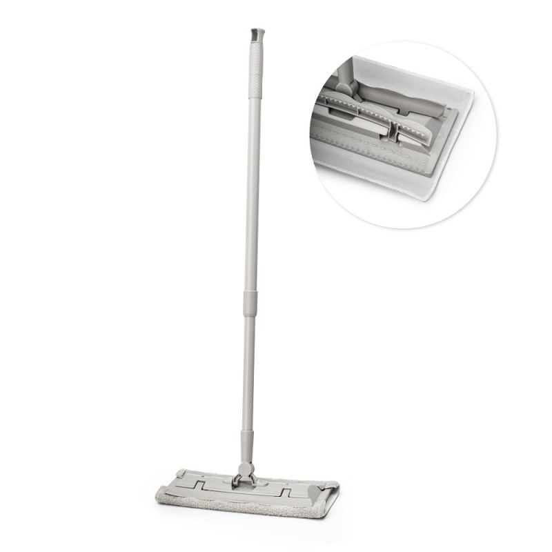 Швабра для пола с телескопической рукояткой подходит для сухой и влажной уборки всех типов поверхностей. Удобная платформа-зажим позволяет использовать ее как со специальной насадкой, так и с любой другой тряпкой.
